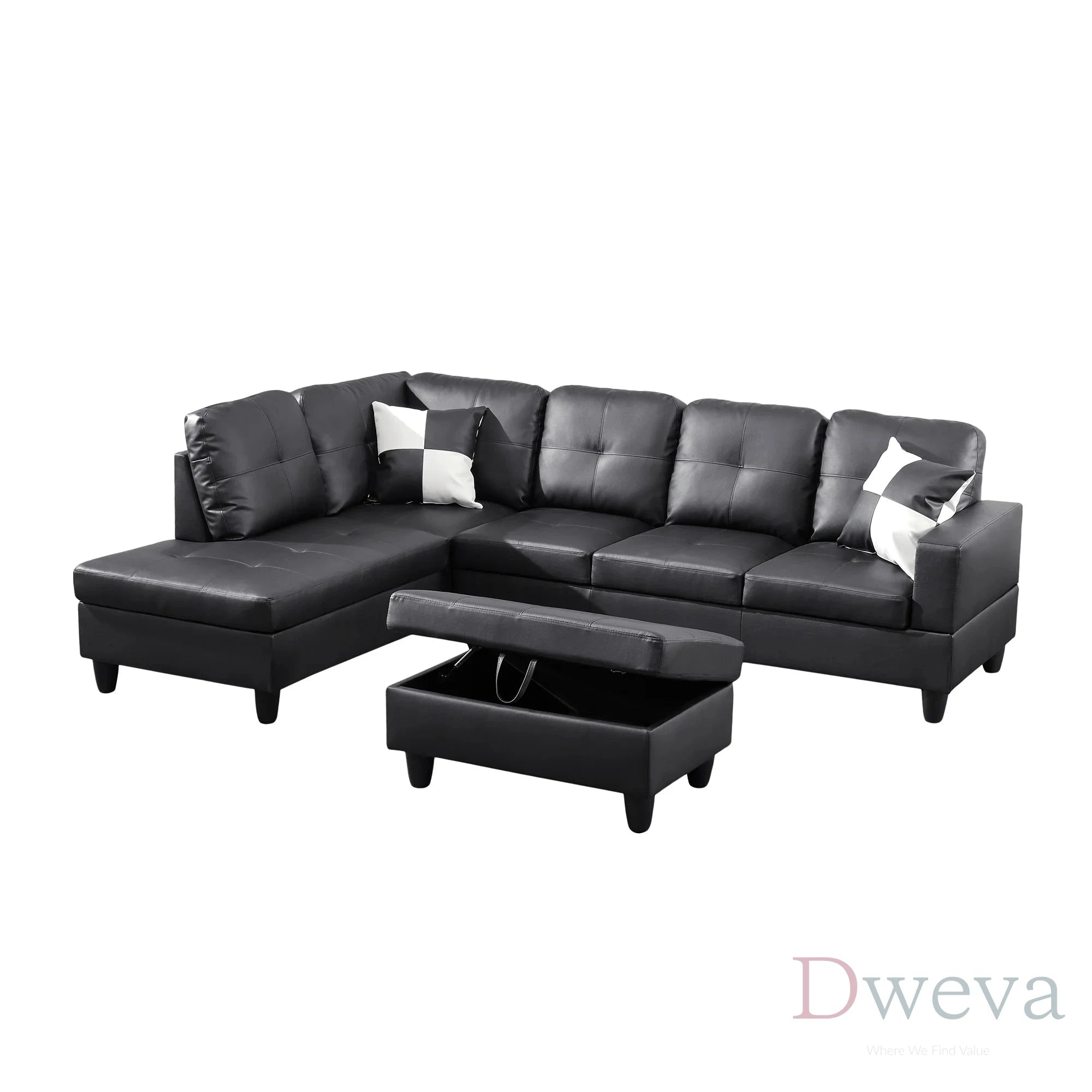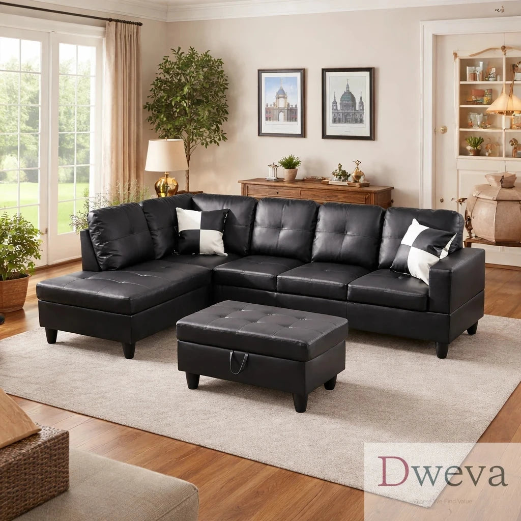 | Set value: chaise + sofa + lift-top storage ottoman included | Set value: ottoman often costs extra, and storage is often not included |