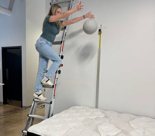 We also place a 44-pound kettlebell on the mattress for 7 seconds and record how long it takes for the mattress to bounce back to its original shape once the weight is lifted. Hybrids and innersprings usually spring back faster than slow-moving memory foam.