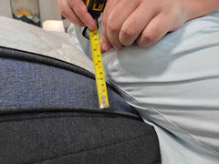 We test edge support by sitting and lying on the mattress perimeter, assessing the amount of sinkage and how secure we feel. We also use weight plates stacked on the edge to simulate different weight categories, helping us determine if the mattress suits certain body types better. Based on these results, we rate overall edge support out of 5.