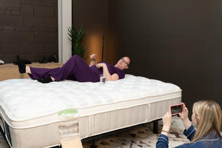 Next, we repeat the test, but this time, instead of using a water glass, one of our testers lies blindfolded on the bed while another tester gets in next to them. The blindfolded tester will raise their hand or speak up whenever they feel the other person moving.
