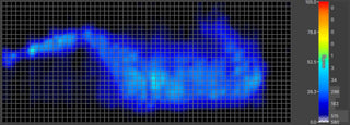 Next, we use a pressure map (a mat that records the amount of pressure in PSI applied to the hips, shoulders, and lower back). Typically, lower-than-average PSI readings (14.94 for side sleepers and 12.4 for back sleepers) indicate effective pressure relief for those positions.