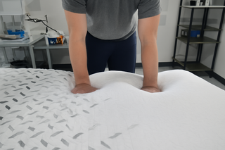 When it comes to how the bed actually feels, we rated it a 7.5 out of 10 on the firmness scale—definitely leaning toward the firmer end. The foam layers on top add just a touch of softness. However, Ryan said he “didn’t really get much pressure relief,” and that “people who like a bit of body contouring might think this mattress feels too stiff.” This shouldn’t be a problem for stomach sleepers who prefer a bit of lift, though it might be less ideal for folks with a bigger midsection or chest.