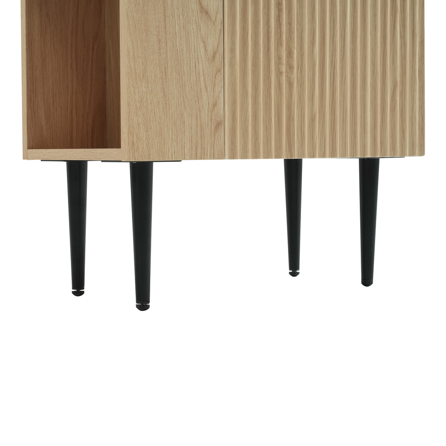 This contemporary bathroom vanity combines elegant design with practical storage solutions. Featuring a single rectangular ceramic sink with overflow hole and water barrier edges, it ensures safe and spill-free use. The sturdy MDF cabinet with triple-coat finish resists moisture and wear, while the left-side open compartment offers quick access to essentials like toiletries or phones. Black metal legs with adjustable plastic feet enhance stability and protect flooring. Ideal for small to medium bathrooms, this freestanding unit provides ample interior space and a sleek, modern aesthetic that complements various bathroom styles.