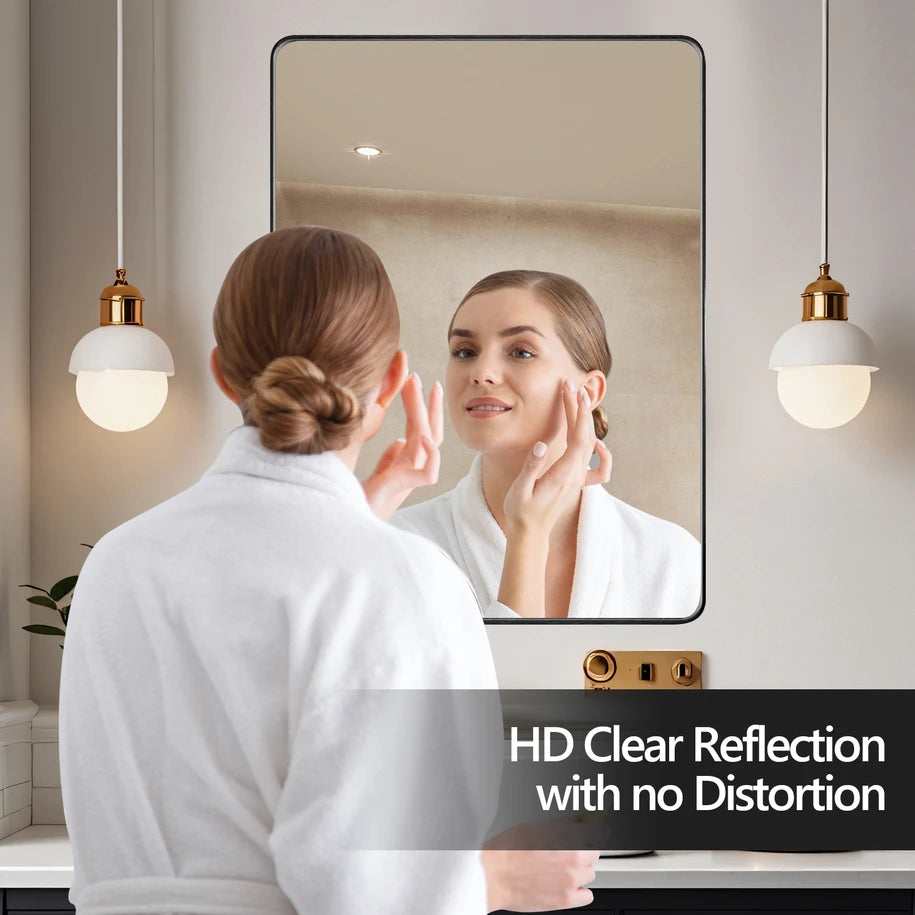 - 【Sturdy Mirror with Premium Materials】 bathroom mirror with aluminum alloy frame which is anti-rust; Also the metal-framed mirror is built with explosion-proof membrane which ensure the mirror being safely and securely for using