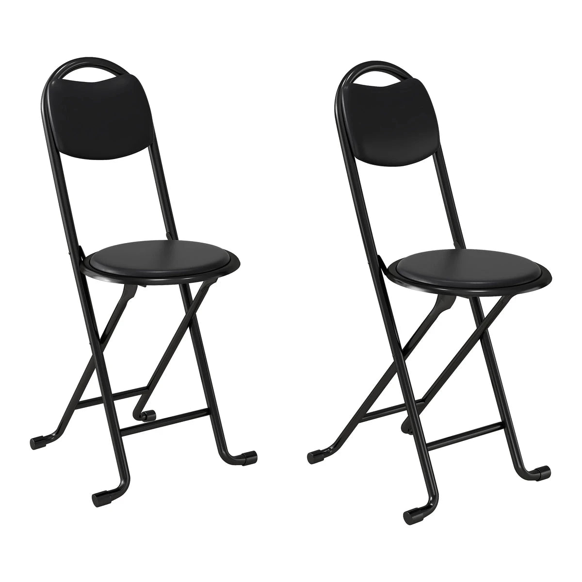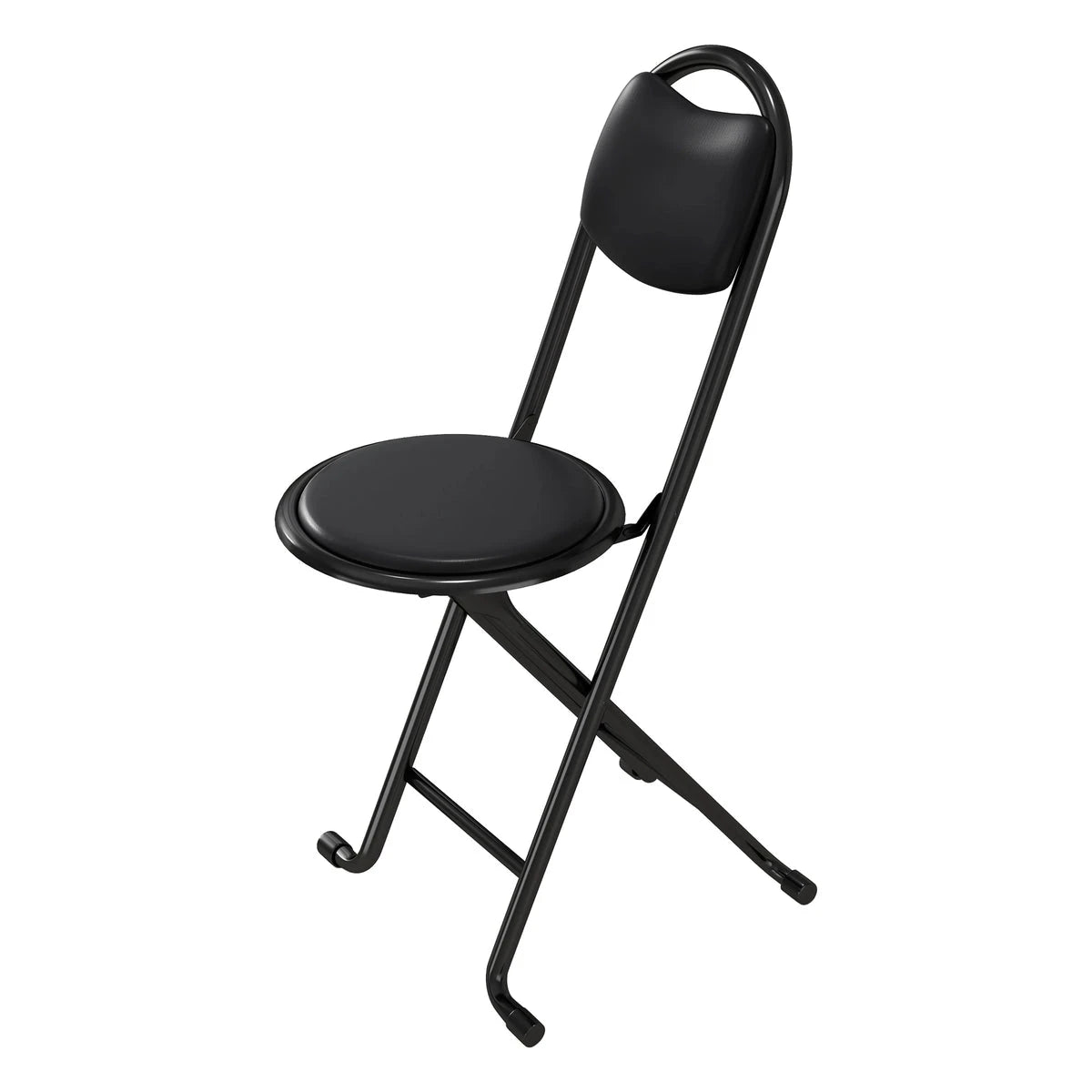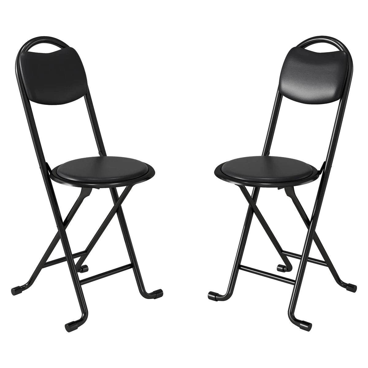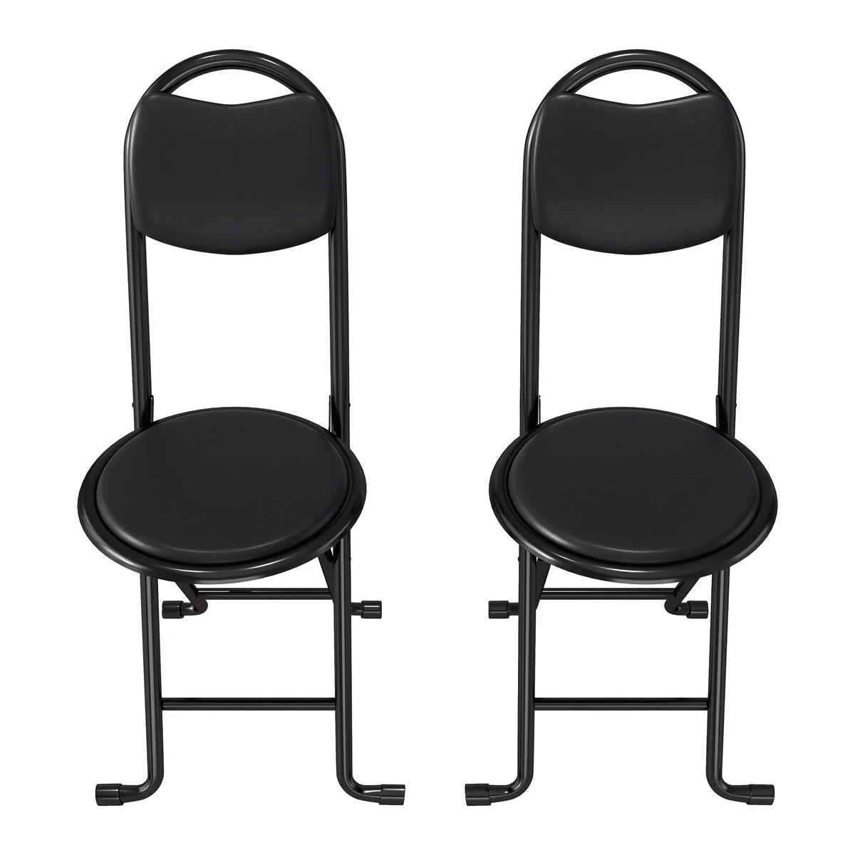 2pcs Folding Stool with Back, Cushioned Padded Folding Stool, Portable Folding Chairs for OutdoorThis folding stool is lightweight and compact, making it ideal for taking with you to parties, reunions, concerts, or wherever else you need to bring a portable seat. This small stool folds down to easy storage in even the smallest homes, apartments, or dorm rooms.Description & DimensionsColor: Black Material: Metal+PU leather Overall Dimensions: 12.75” x 14”x 28.75” (L x W x H) Height from seat to floor: 17" Weight Capacity: 200LBS Net Weight: 7.04 lbs Gross Weight 9.9 lbs Country of Origin China Quantity Included 2pcs chairs