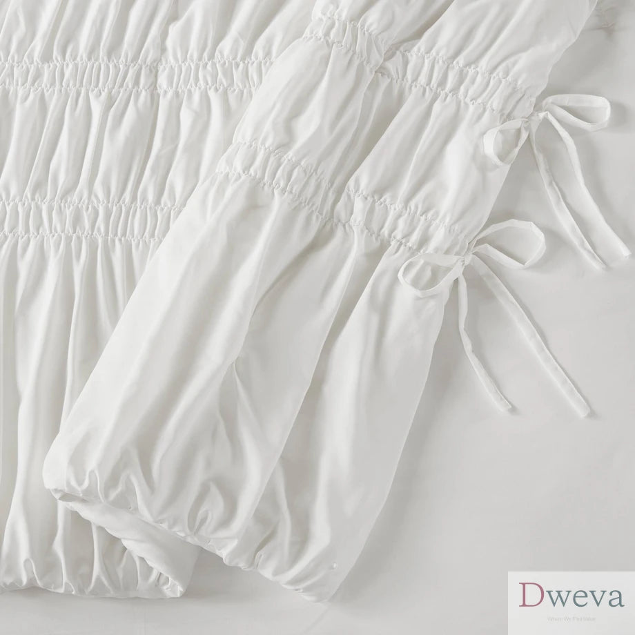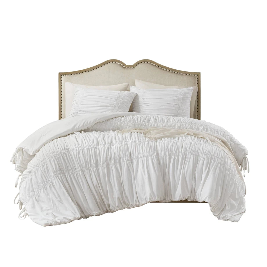 - Romantic Ruched Design - The cozy ruched details on both comforter and shams, adorned with delicate bow ties along the comforter edge, adds a touch of effortless shabby chic charm, creating a dreamy space.