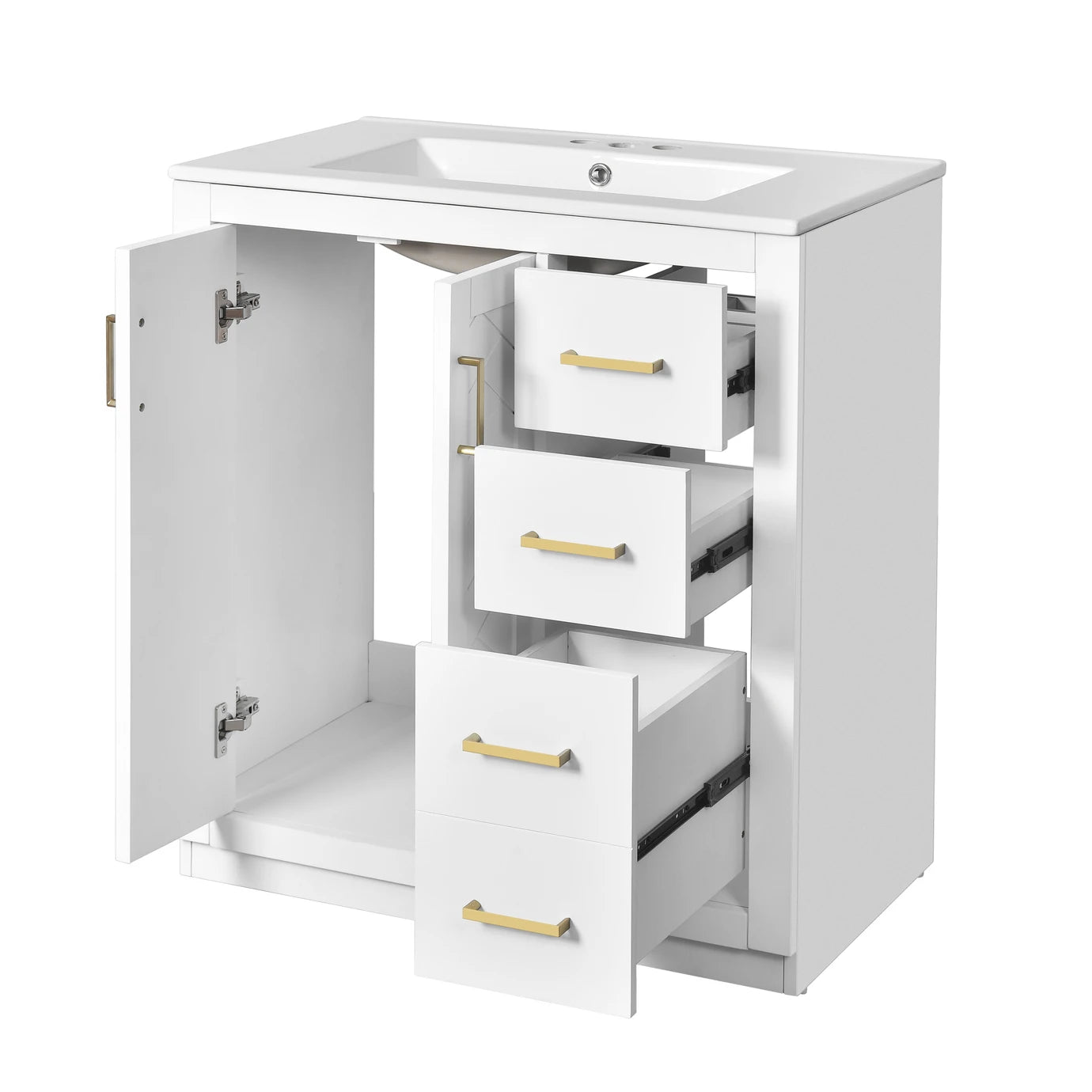 | Product Name | 30'' Bathroom Vanity with Ceramic Sink Combo, Solid Wood Frame Bathroom Storage Cabinet, Freestanding Vanity Set with 3 Drawers& Soft Closing Doors |