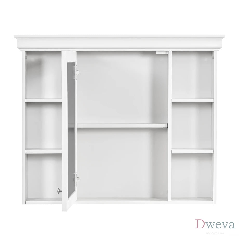 Item Code N710P196545K Product Type Single Box Product Product Name 35'' x 28'' White Wall Mounted Bathroom Storage Cabinet with Mirror Door, Modern Bathroom Wall Cabinet with Mirror, Medicine Cabinet with 6 Open Shelves Place of Origin Viet Nam Main Color White Main Material MDF+glass Product Style Luxury Mount Type Wall Mounted Cabinet Finish Type Painted Cabinet Features Adjustable Shelves Cabinet Number of Drawers Cabinet Number of Doors 1 Number of Shelves 5+ Use Case Bathroom Product Dimensions
