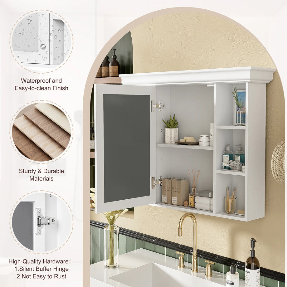 | Product Name | 35'' x 28'' White Wall Mounted Bathroom Storage Cabinet with Mirror Door, Modern Bathroom Wall Cabinet with Mirror, Medicine Cabinet with 6 Open Shelves |
