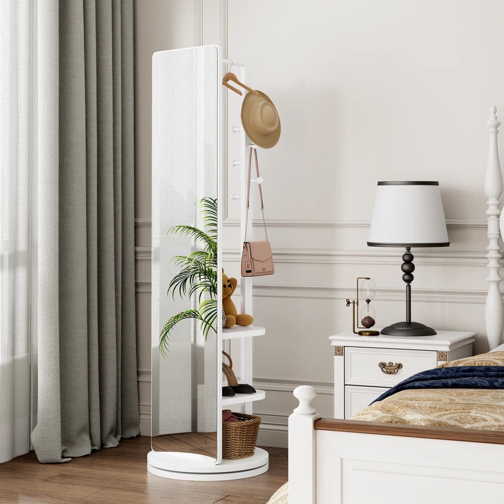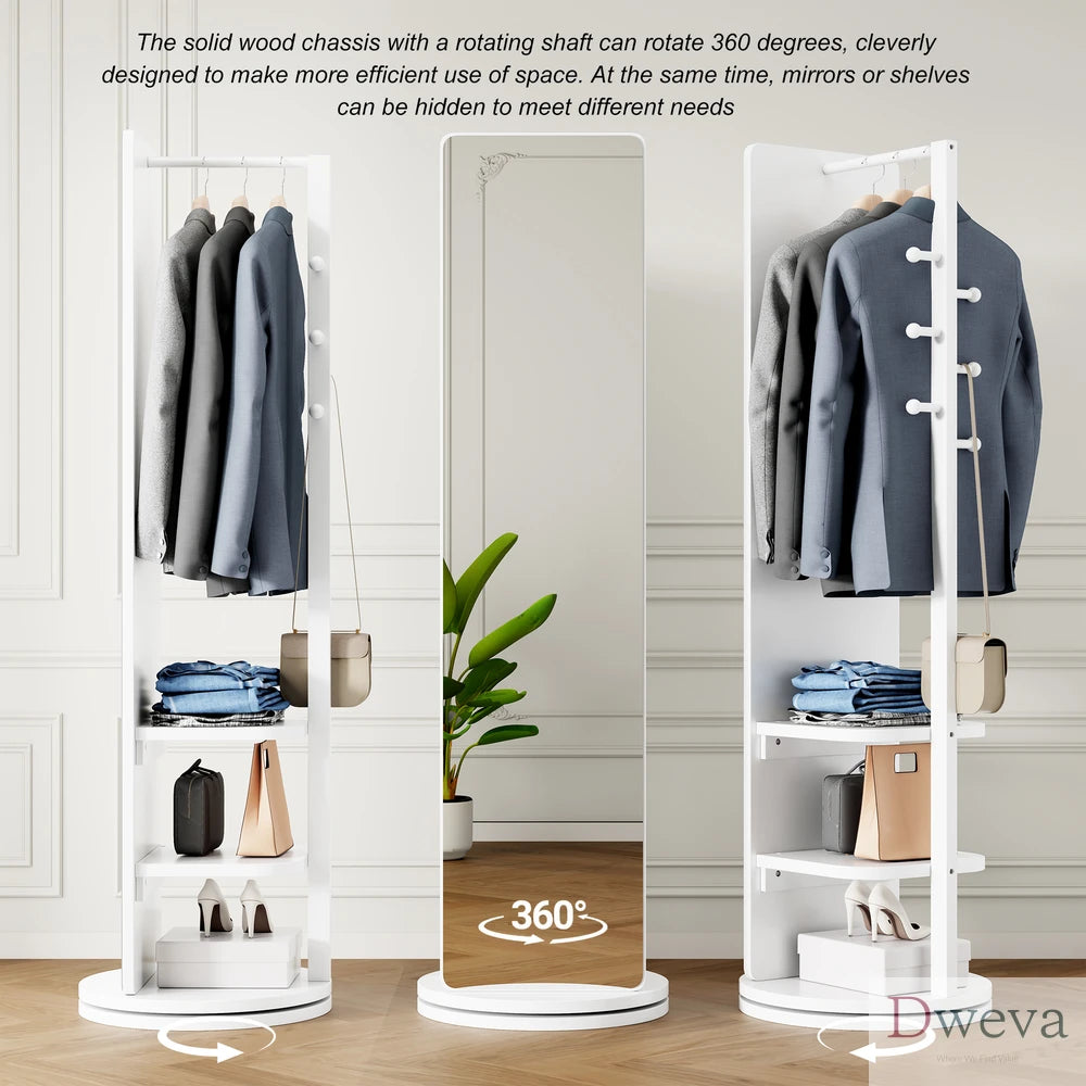 | Product Name | 360° Rotating 66"x14" Multifunctional Full Length Mirror with Hook Storage Rack Coat Rack with Mirror Solid Wood Floor Mirror Bedroom Living Room Cloakroom Space Saving (wh |