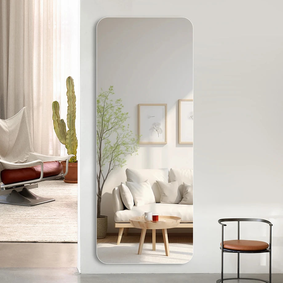 Enhance your living space with this stylish full-body mirror, perfect for living rooms, bedrooms, and cloakrooms. Its explosion-proof glass ensures safety, while the high-quality 5mm silver mirror provides clear and realistic reflections. The frameless design with rounded corners adds a modern touch, making it a versatile addition to any decor. Corrosion-resistant and durable, this mirror maintains its pristine look over time. Easy to hang with pre-drilled holes, it saves space while offering a secure fit.