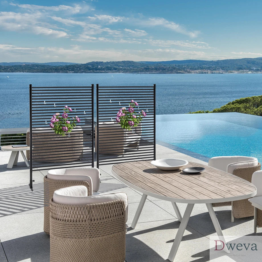 | Product Name | 71.26''x46.65'' Outdoor Privacy Screens Freestanding,Metal Privacy Fence Panels for Outside, Slatted Privacy Screens with Stand,Black |