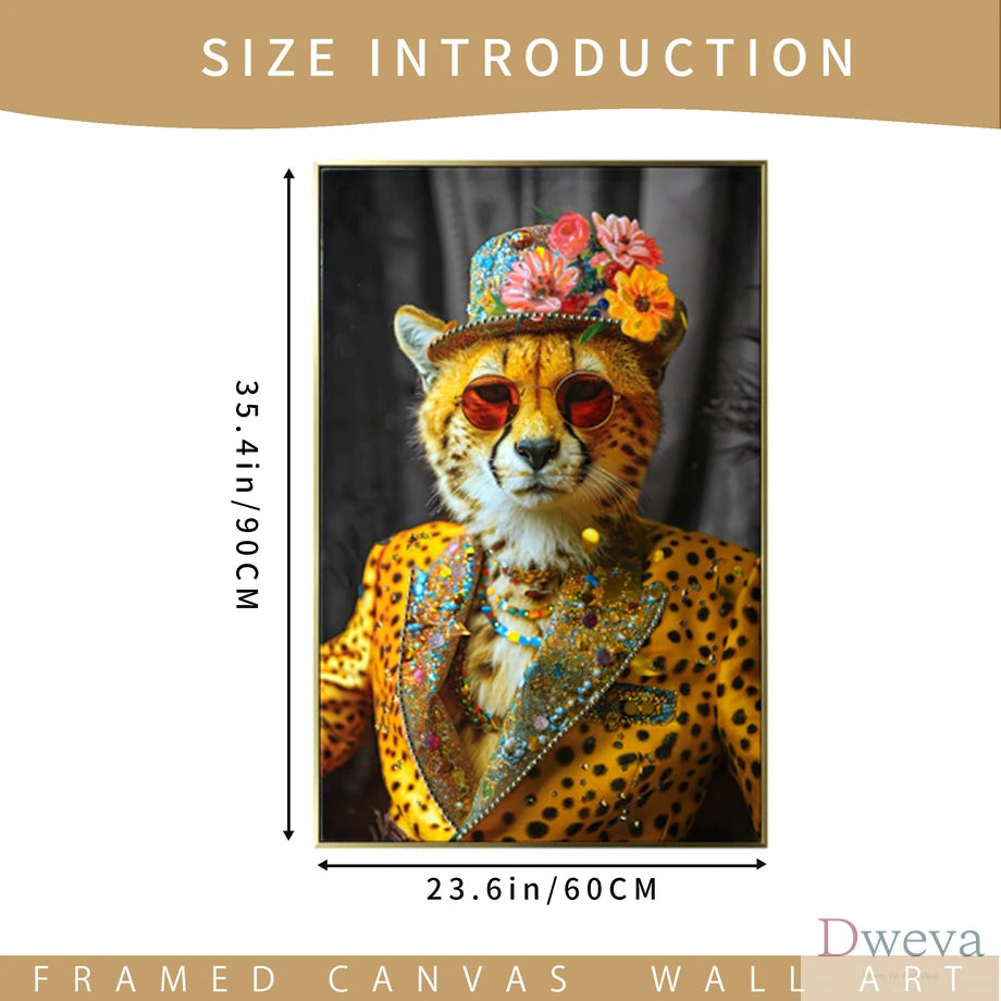 | Product Name | Abstract Art Wall Decor: Stylish Cheetah in Leopard Print Suit with Sunglasses and Hat Featuring Flower - Unique Modern Canvas Painting for Living Room, Bedroom, Office decorative picture |