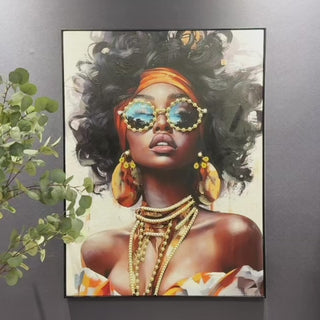 Item Code W3374P322229 Product Type Single Box Product Product Name African American Woman Canvas Wall Art Black Girl with Curly Hair Sunglasses Orange Headwrap Earrings and Necklaces Modern Afrocentric Decor for Living Room Bedroom Office decorative picture Place of Origin China Main Color Black Brown Main Material Canvas,Plastic Product Dimensions