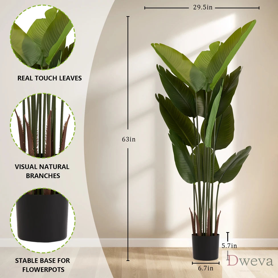 Enhance your home, office, or garden with this Artificial Bird of Paradise Plant. Standing at 160cm tall, this faux tropical palm tree provides a lush, green aesthetic without the maintenance of a real plant. Ideal for both indoor and outdoor settings, it brings a touch of nature to living rooms, offices, or patios. With its realistic design and durable materials, it's perfect for those seeking a stylish and low-maintenance greenery solution.
