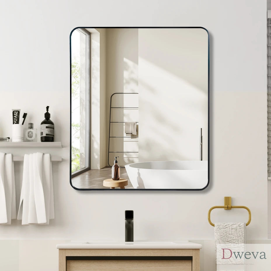 - The Rectangular mirror comes with reinforced hooks and screws, and we put it installation manual inside, and it is easy for you to install and hang it.
