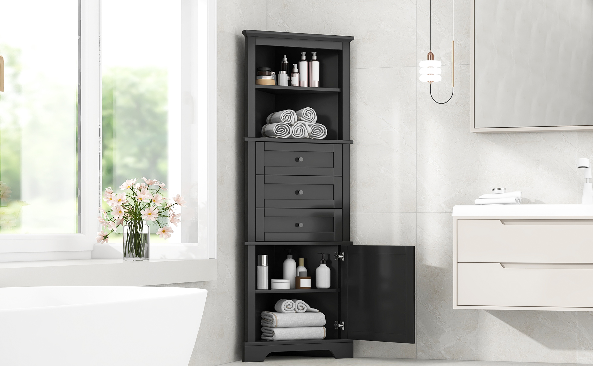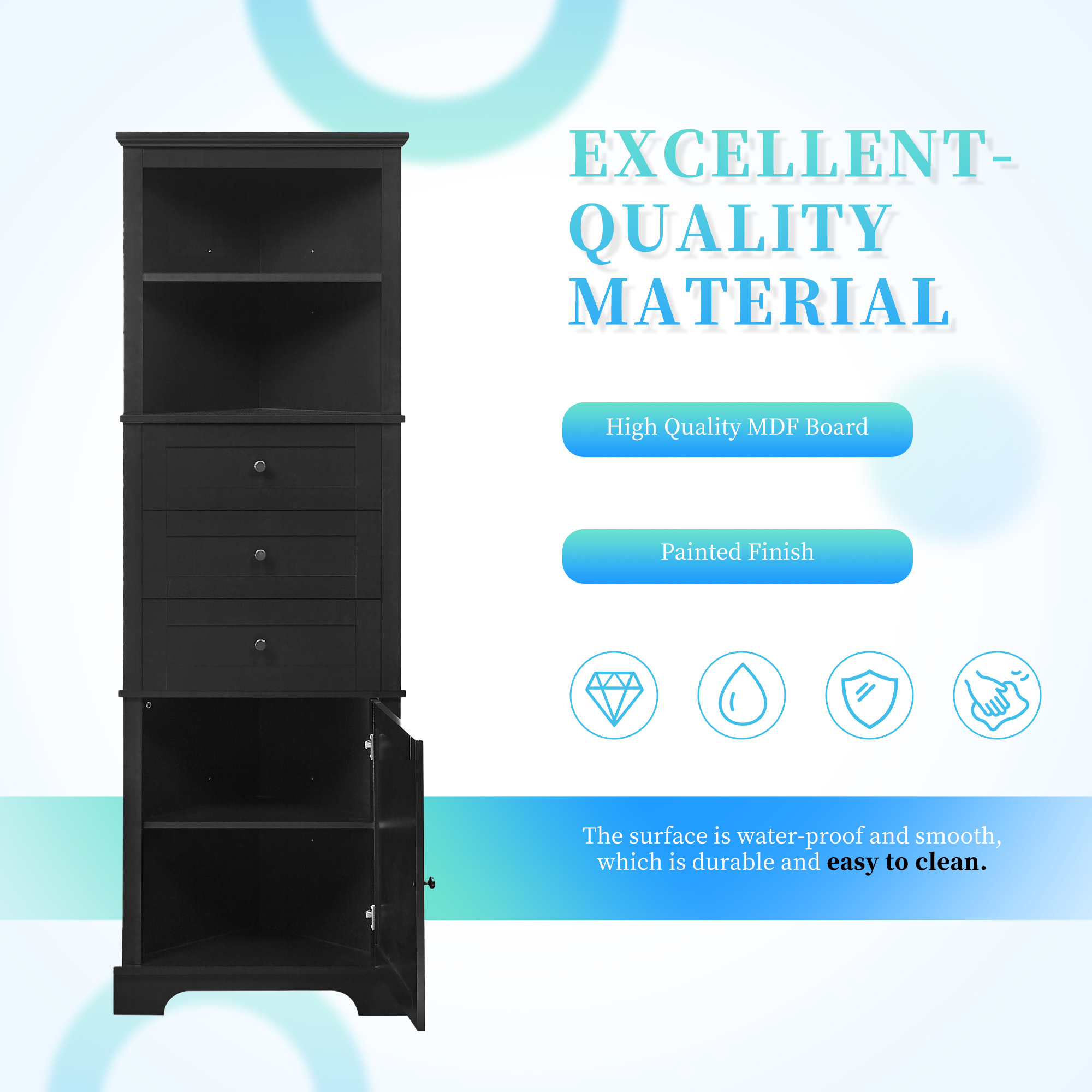 | Product Name | Black Triangle Tall Cabinet with 3 Drawers and Adjustable Shelves for Bathroom, Kitchen or Living Room, MDF Board with Painted Finish (WF306469AAG New Color) |