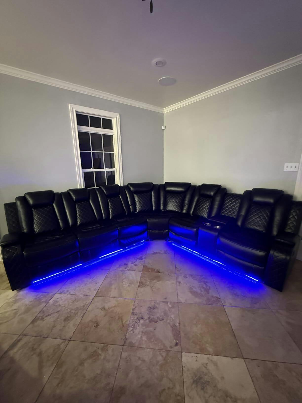 | Lighting: ambient LED base lighting integrated into the sofa design | Lighting: lighting is frequently not included on standard reclining sectionals |
