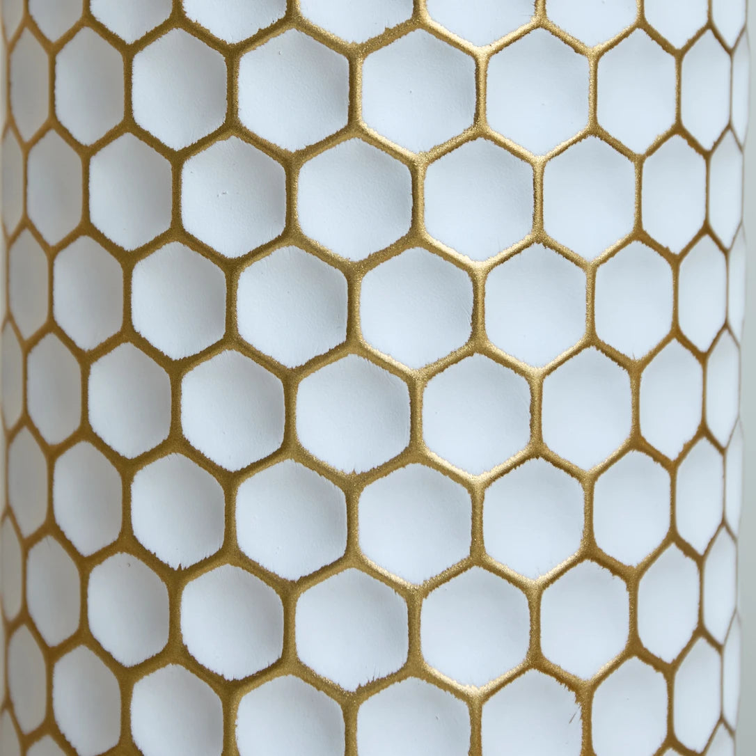- Feature: White honeycomb-textured center paired with a hammered gold finish.