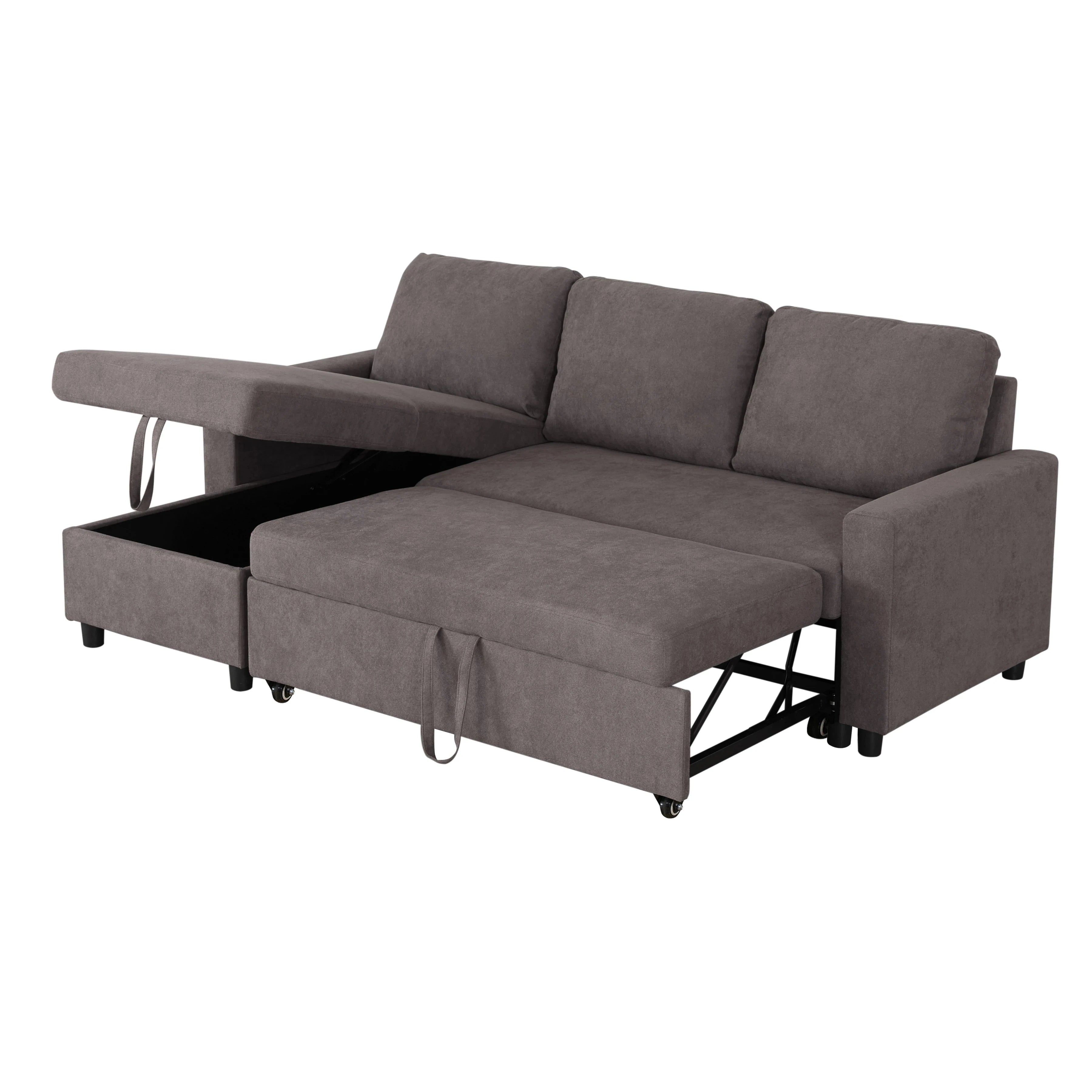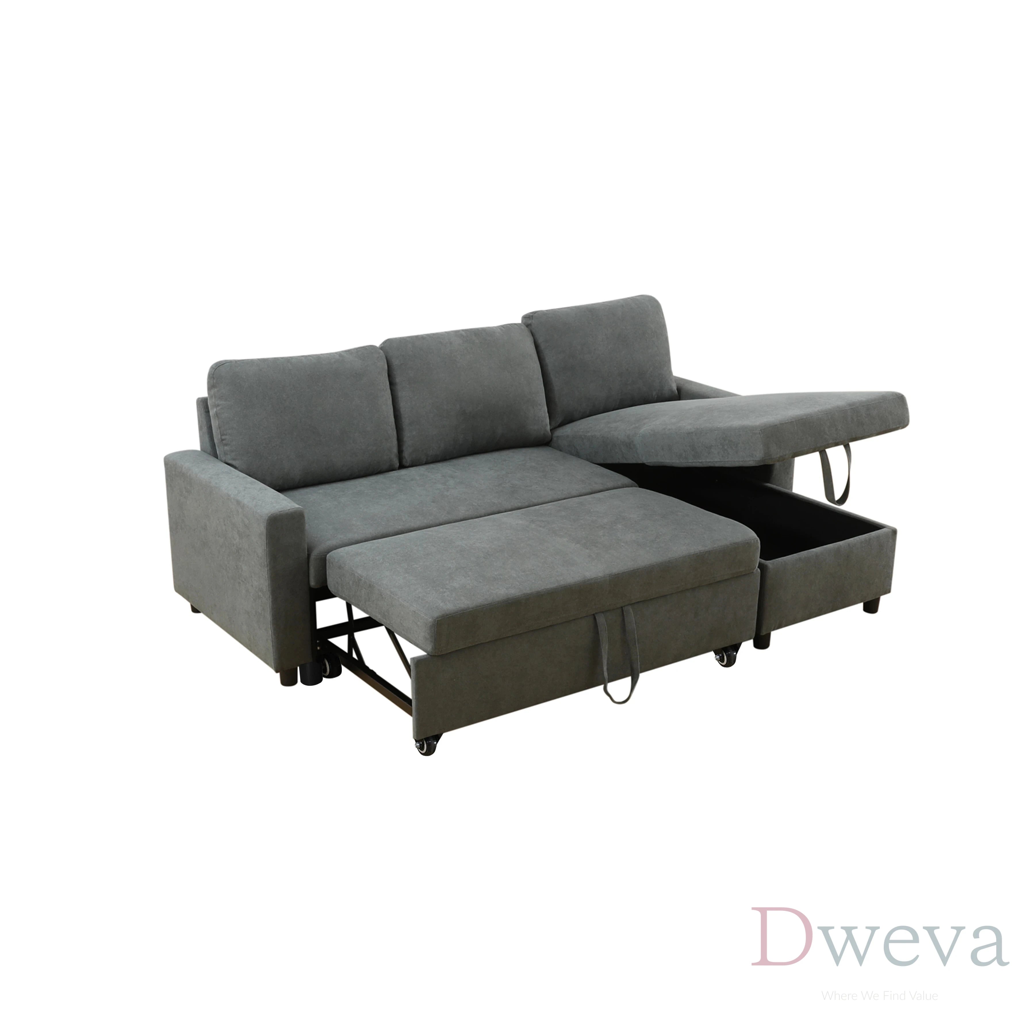 - Pull-out sleeper design converts the L-shape couch into a sleeper bed.