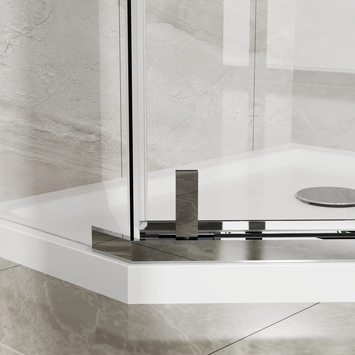 Transform your bathroom with the sleek and modern Goodyo Neo-Angle Frameless Shower Door. This corner shower enclosure features a space-saving neo-angle design, perfect for enhancing smaller bathrooms without compromising on comfort. Crafted from clear SGCC tempered glass and finished with premium chrome hardware, this shower door offers both durability and style. The easy-clean coating and anti-leak features ensure a low-maintenance and dry bathroom environment, while the reversible installation design allows for flexible setup to suit any layout.Feature Bullets