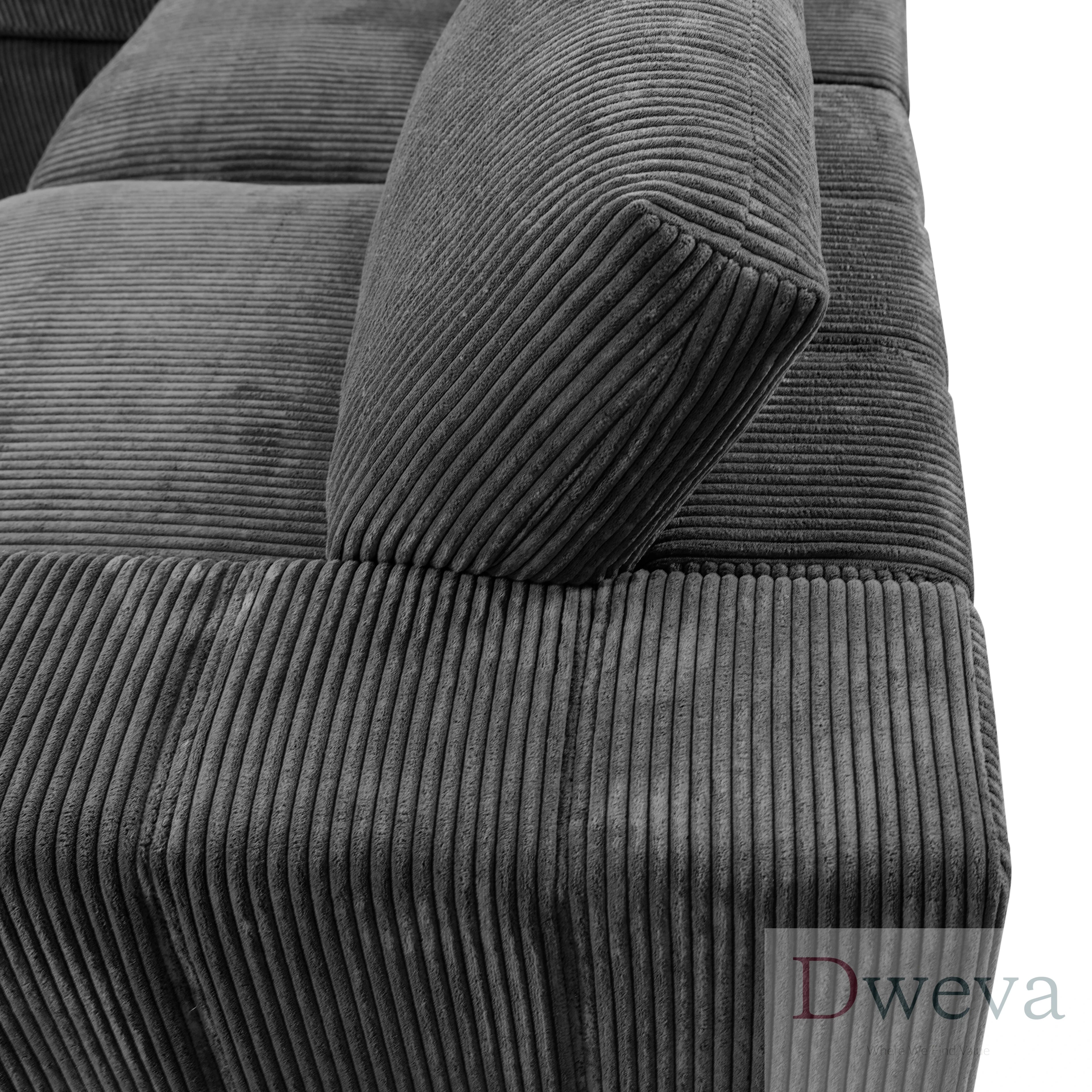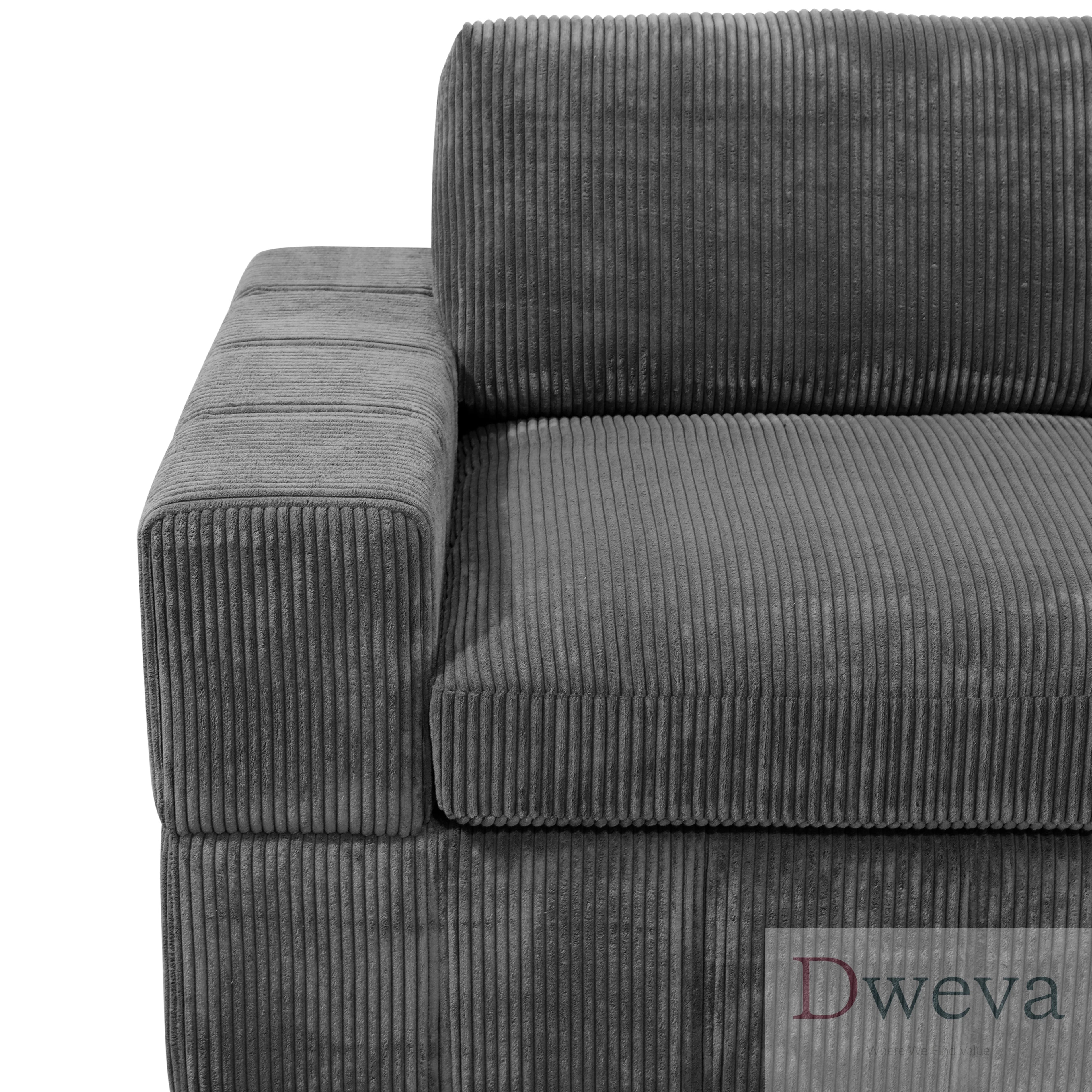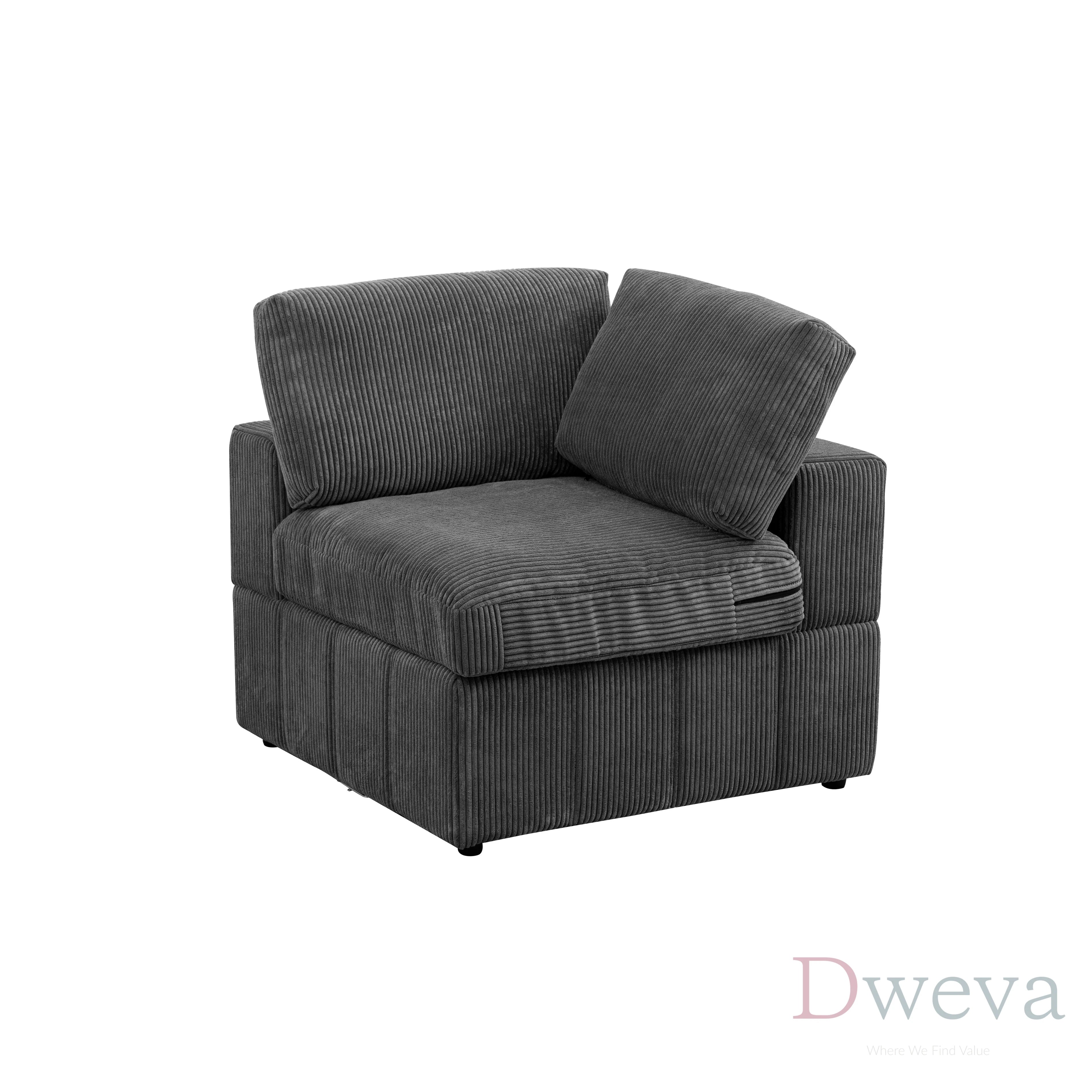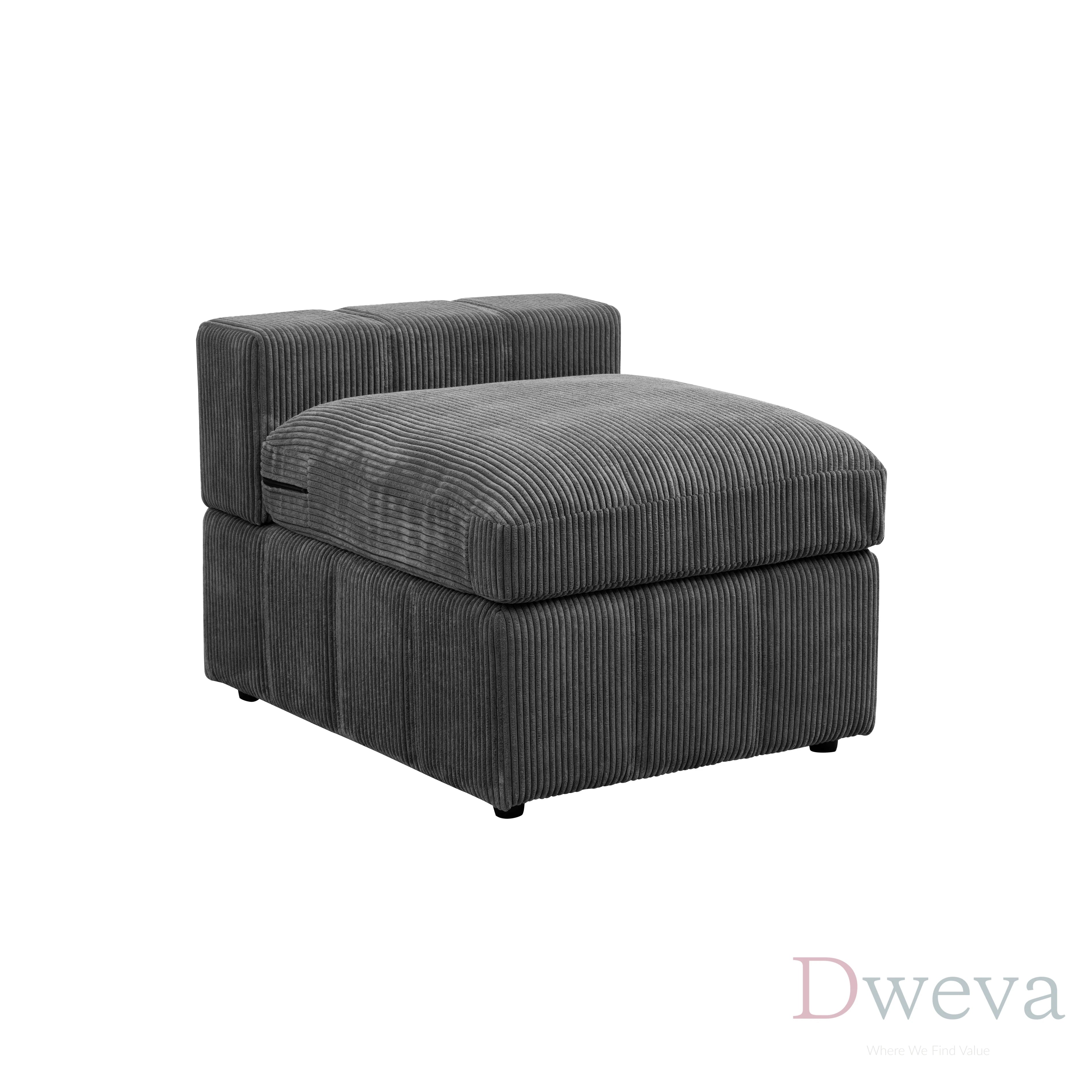 - Upholstery: corduroy fabric that resists pilling, shedding, lint buildup, discoloration, and moisture-related issues; breathable and soft to the touch