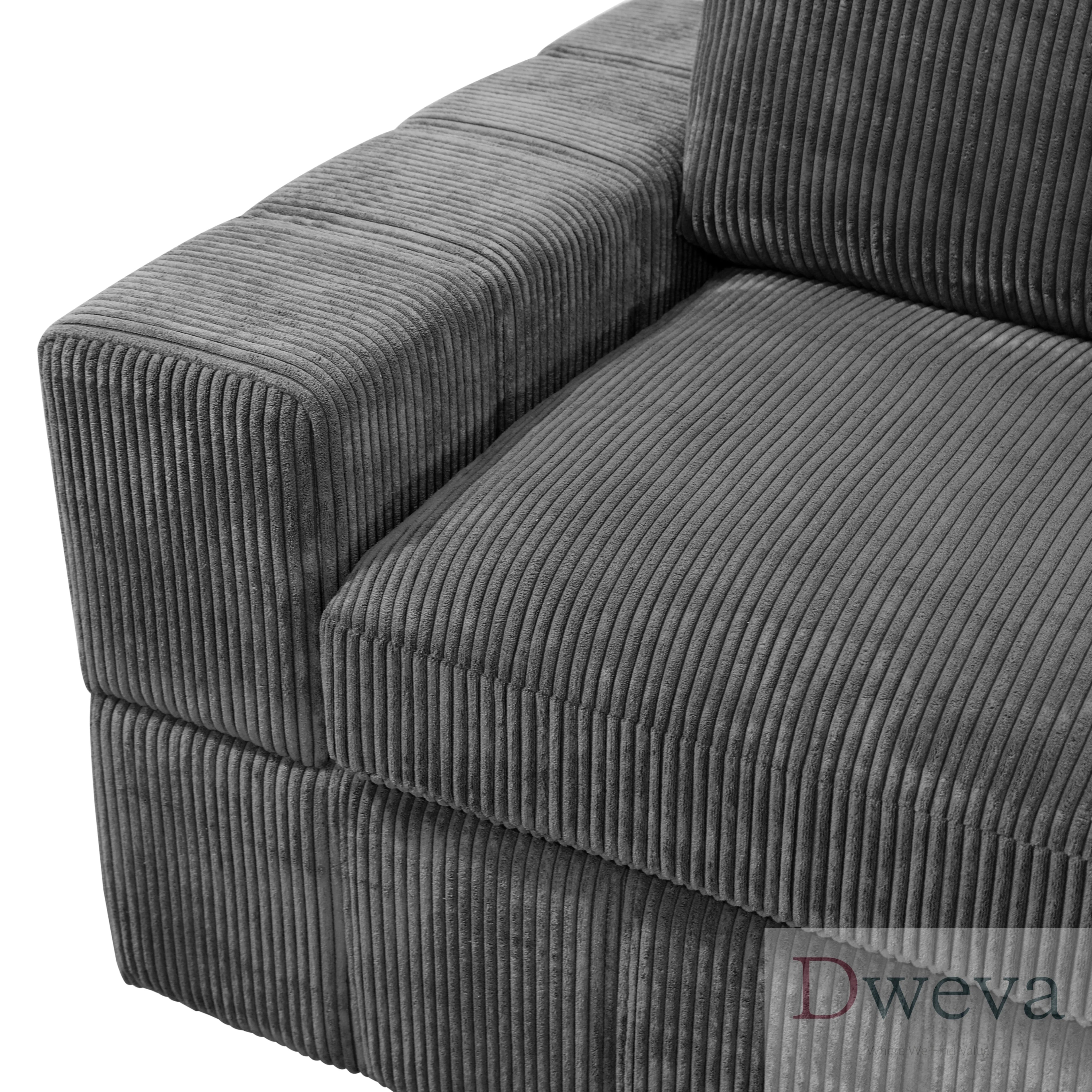 A 7-piece corduroy modular sectional with a wedge corner and movable ottoman that creates a 130 in x 102 in L-shape (36 in deep, 66 in with ottoman) with a 21 in seat depth and 22 in seat height for households furnishing medium-to-large living rooms, family rooms, and open-concept spaces for everyday lounging and hosting.