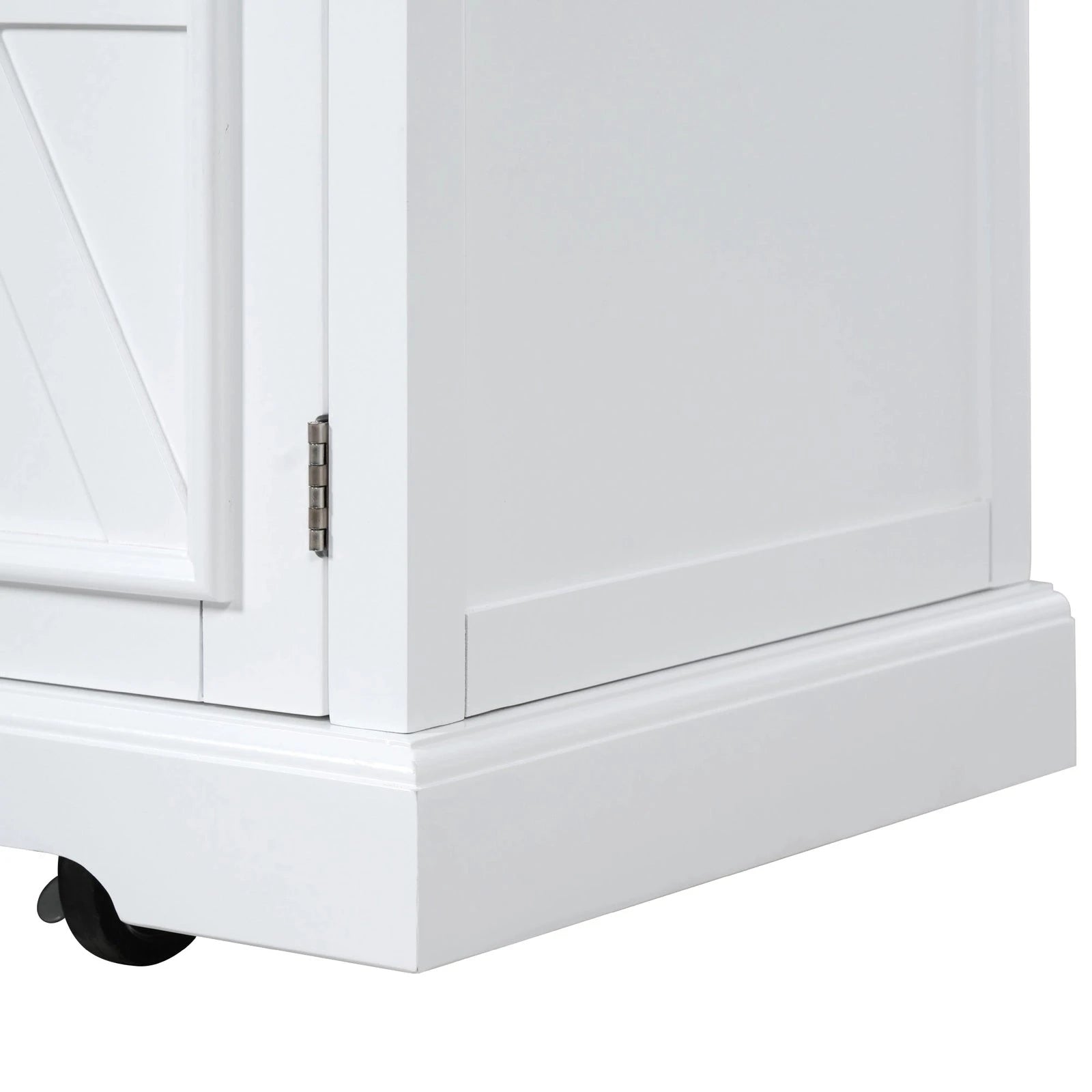 - [Internal Storage Racks] Our rolling kitchen island is designed with an internal storage rack inspired by the functionality of refrigerator doors. The two barn doors all feature 2-tier shelf racks, providing easy access to soy sauce, barbecue sauce, and other condiments, and sticks can keep things from falling.