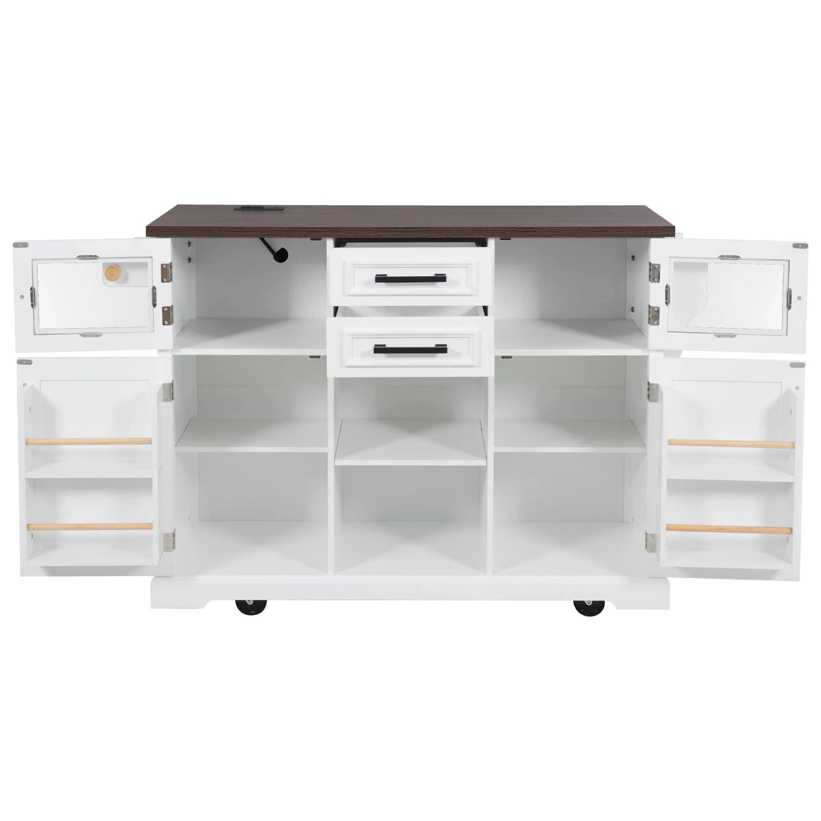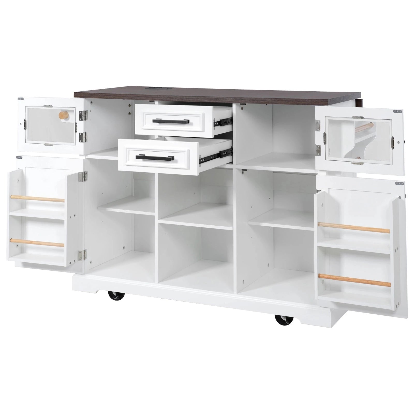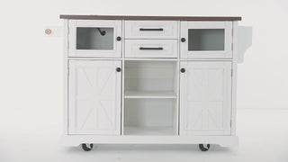 | Product Name | K&K 54.9" Kitchen Island with Drop Leaf, Power Outlet, Kitchen Storage Cart with 4 Door Shelves, Cross Barn Doors & Visual Glass Door, Rolling Kitchen Island on 4 Wheels for Kitchen, Dining Room,White |