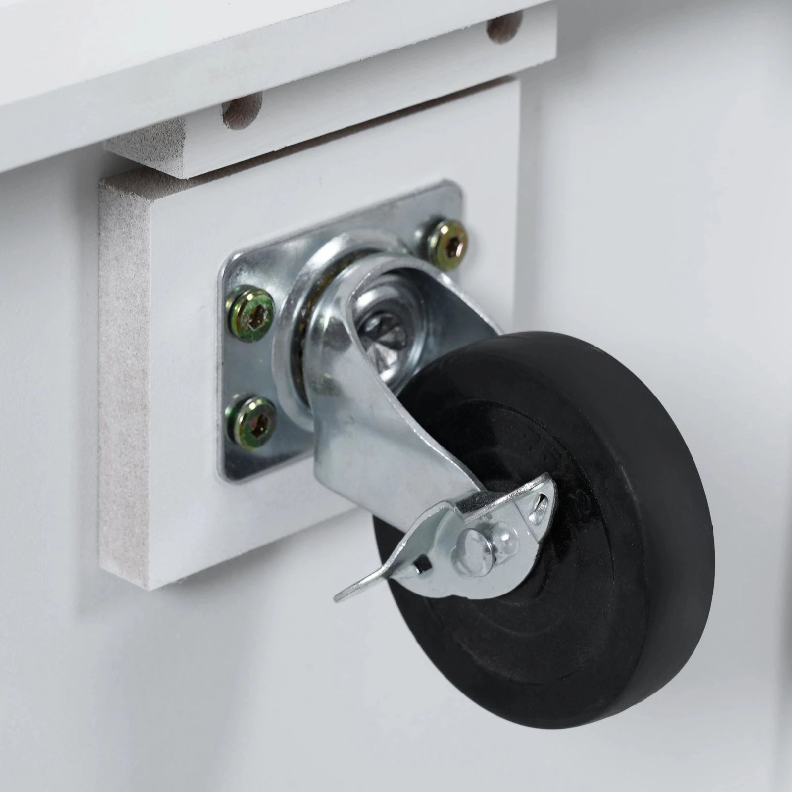 Hidden WheelsThis mobile kitchen island on wheels is equipped with 4 lockable universal wheels. The central placement of one wheel at the base ensures enhanced overall stability during movement.