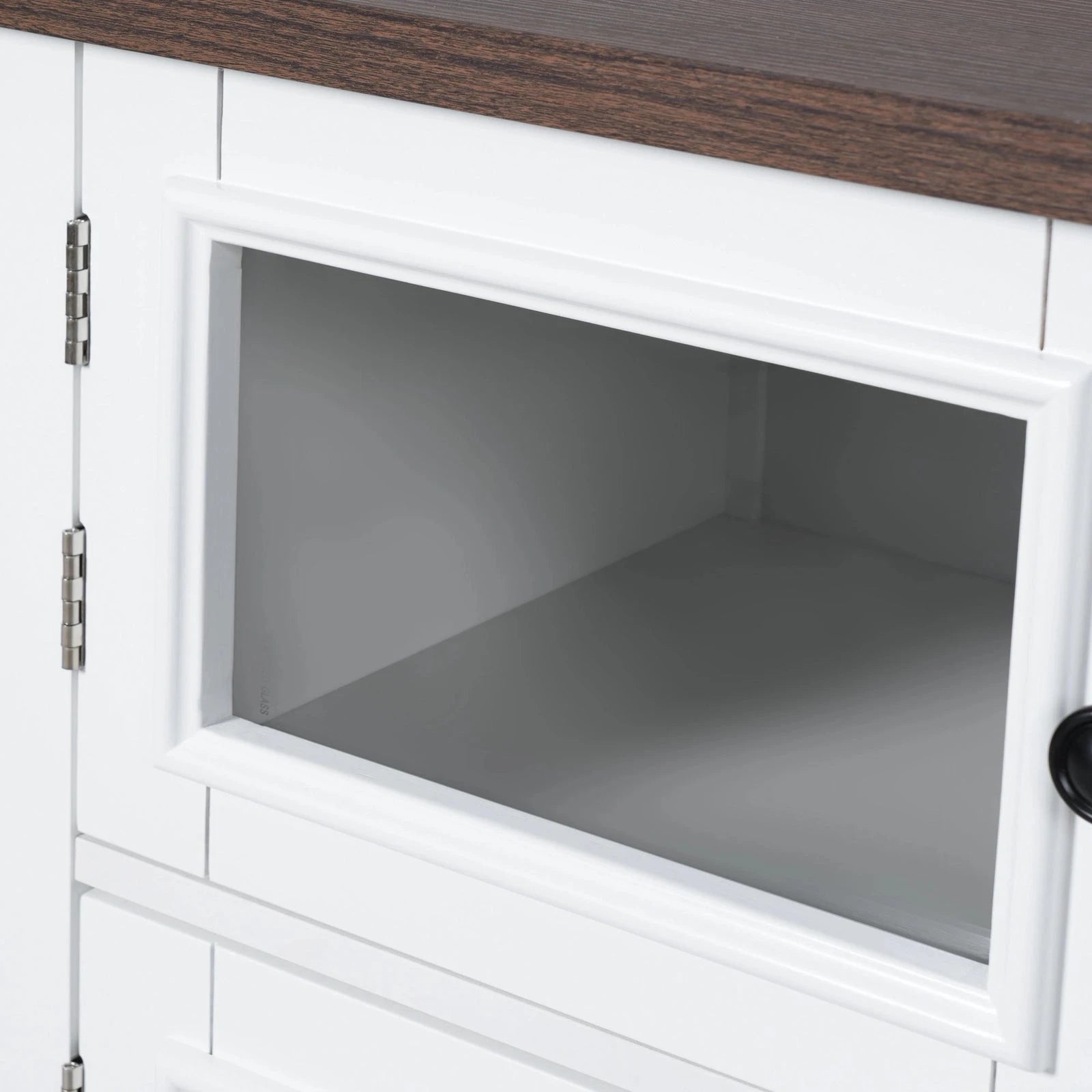 Transparent decorOur kitchen island is stylish and functional, with a unique design featuring a door with a transparent glass panel. See what's inside while adding a modern touch to your space.