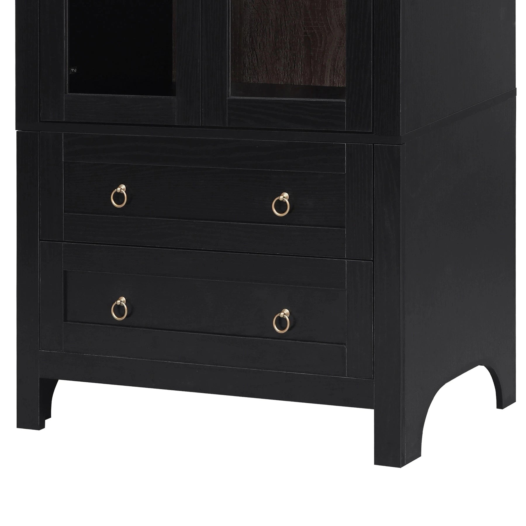 Item Code N707P288972B UPC N707P288972B Product Type Single Box Product Product Name K&K 71" Tall Arched Kitchen Pantry Cabinet with 2 Large Drawers, Modern Farmhouse Kitchen Storage Cabinets with Adjustable Shelves, Glass Door, Wood Versatile Cupboard for Kitchens, Dining Room, Black Place of Origin China Main Color Black Main Material MDF Product Style American Design,American Traditional,Antique,Classic Use Case Dining Room Wood Tone Brown Storage Features Adjustabel Shelves Numbers of Doors 2 Numbers of Drawers 2 Feature Unique Arched Design + Two-tone Color Contrast + 2 Doors + 2 Drawers Product Dimensions