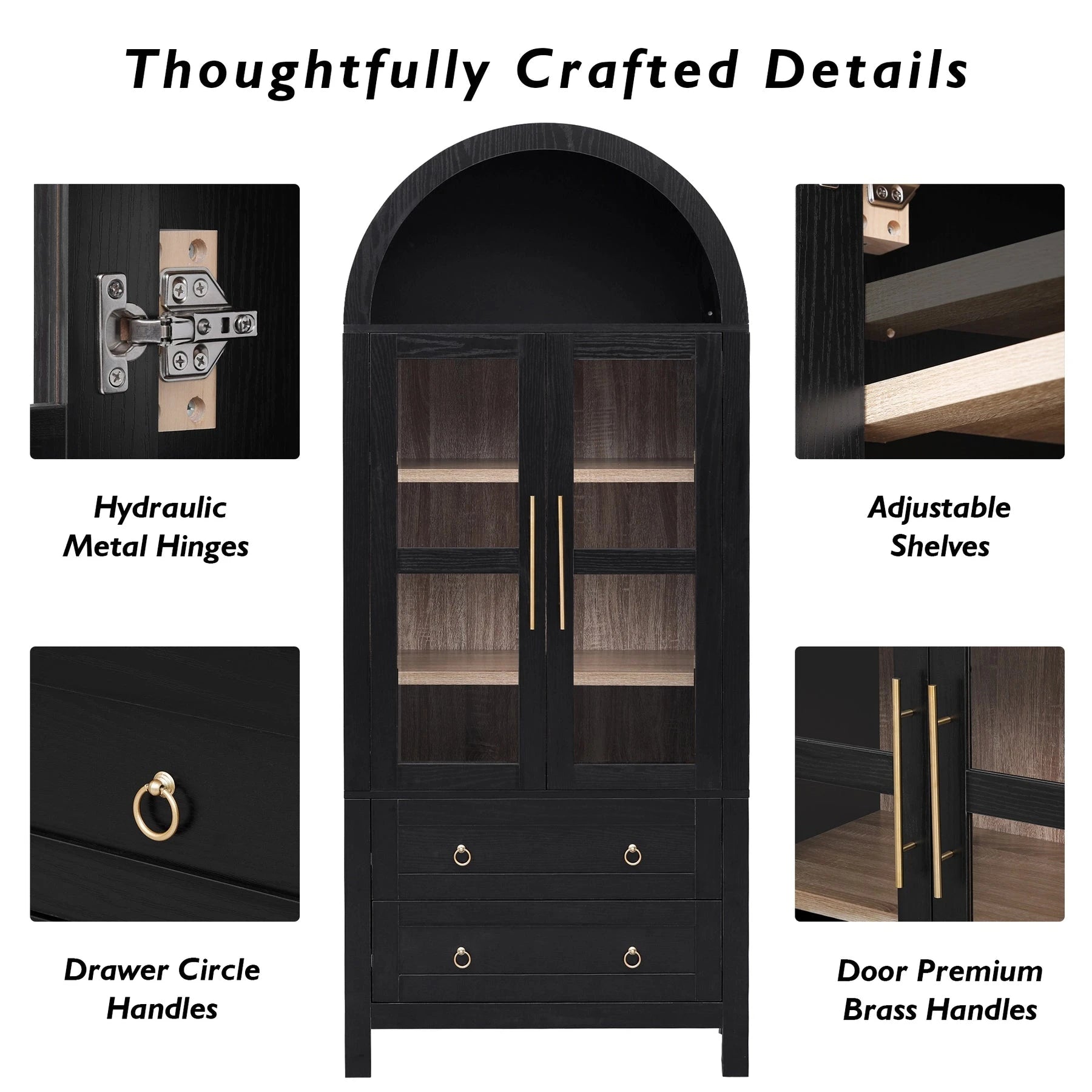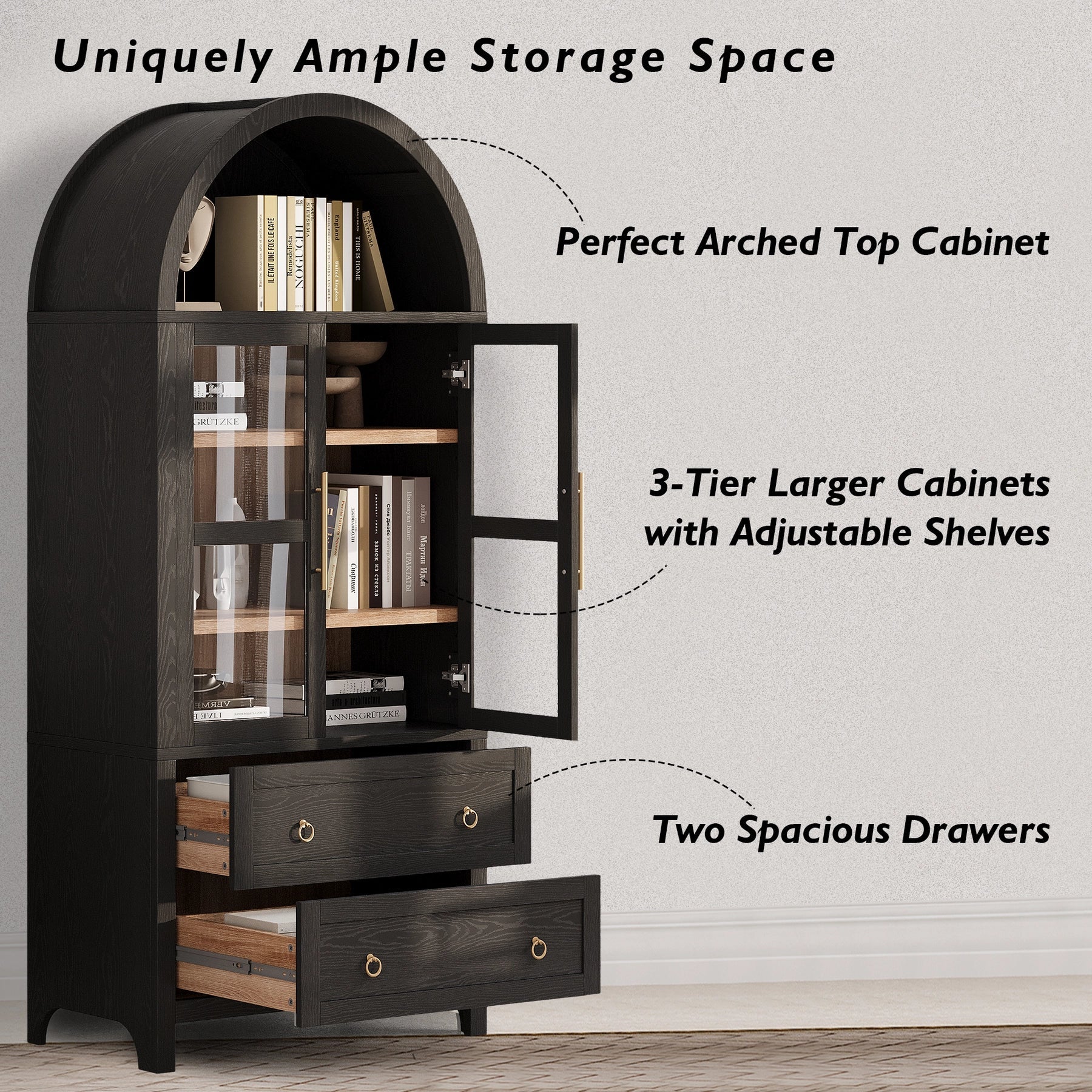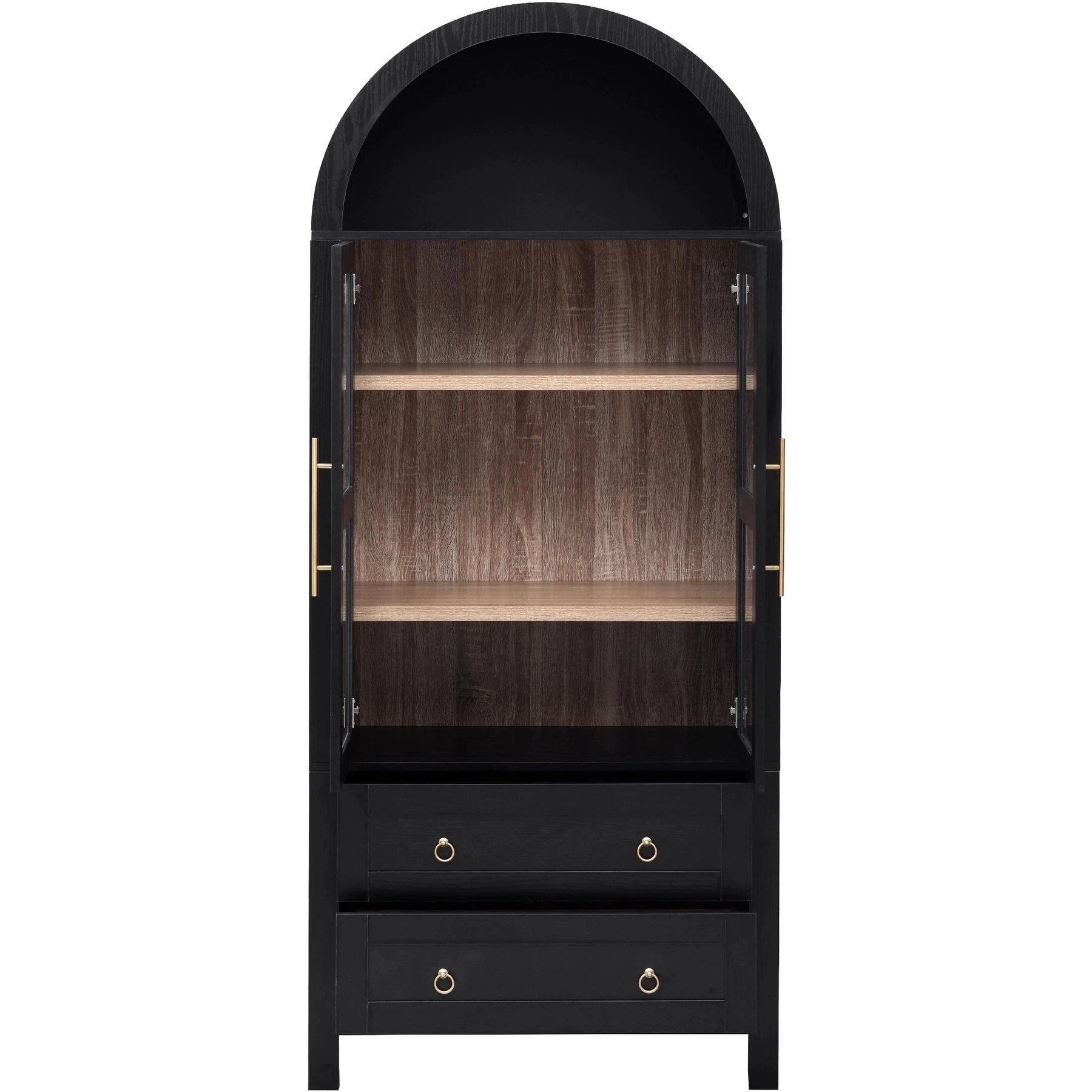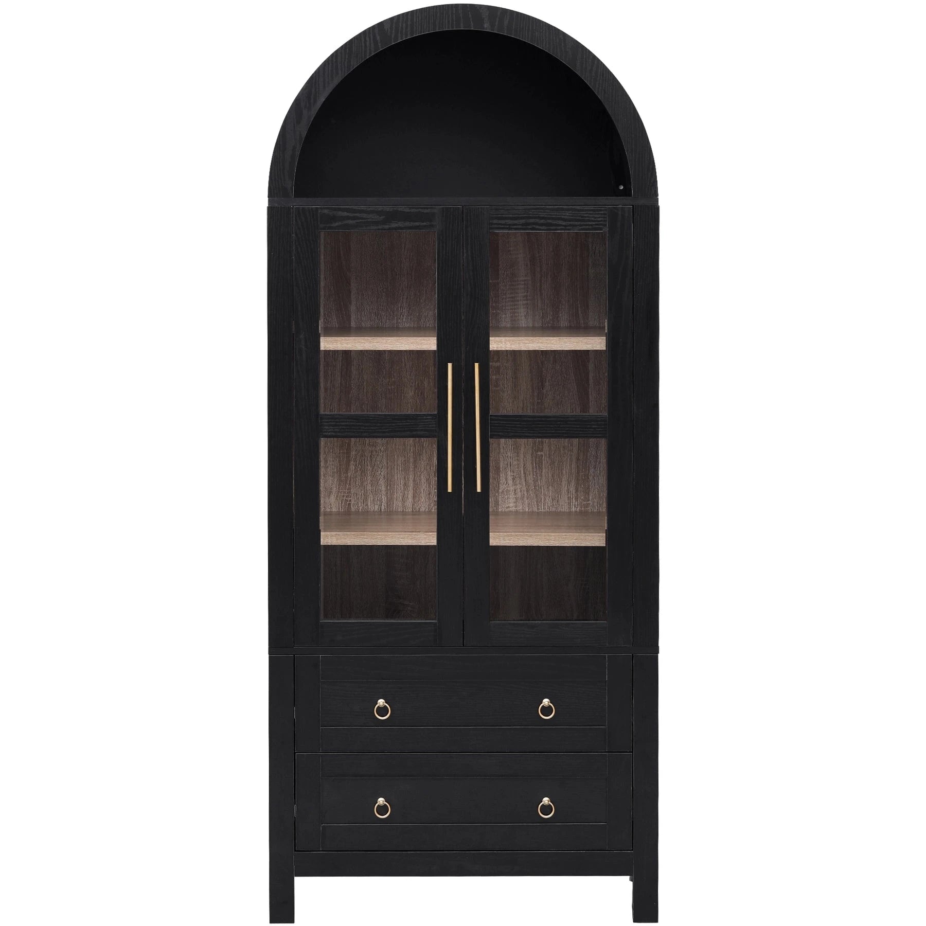 Elegant Arched DesignThis arched storage cabinet has a unique arched top design with stylish glass doors. It can effectively add an elegant atmosphere to your interior. Meanwhile, the arched top can be used for organizing and placing decorative items.