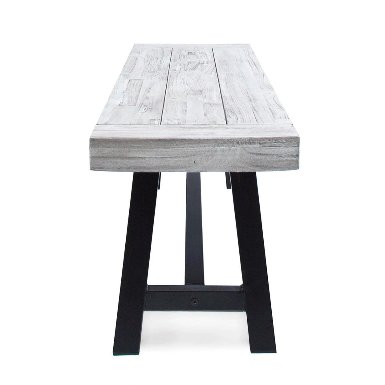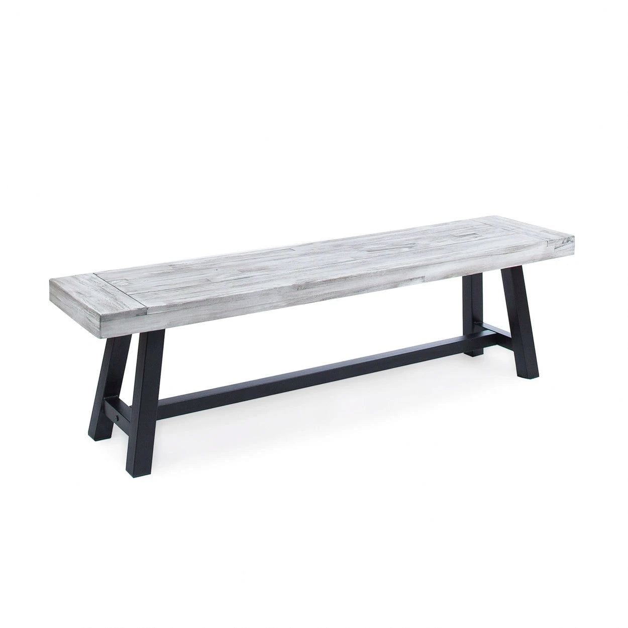 Tranquilizer Outdoor Acacia Wood Bench with Slat Panel Design, Sandblasted Light Gray + Black