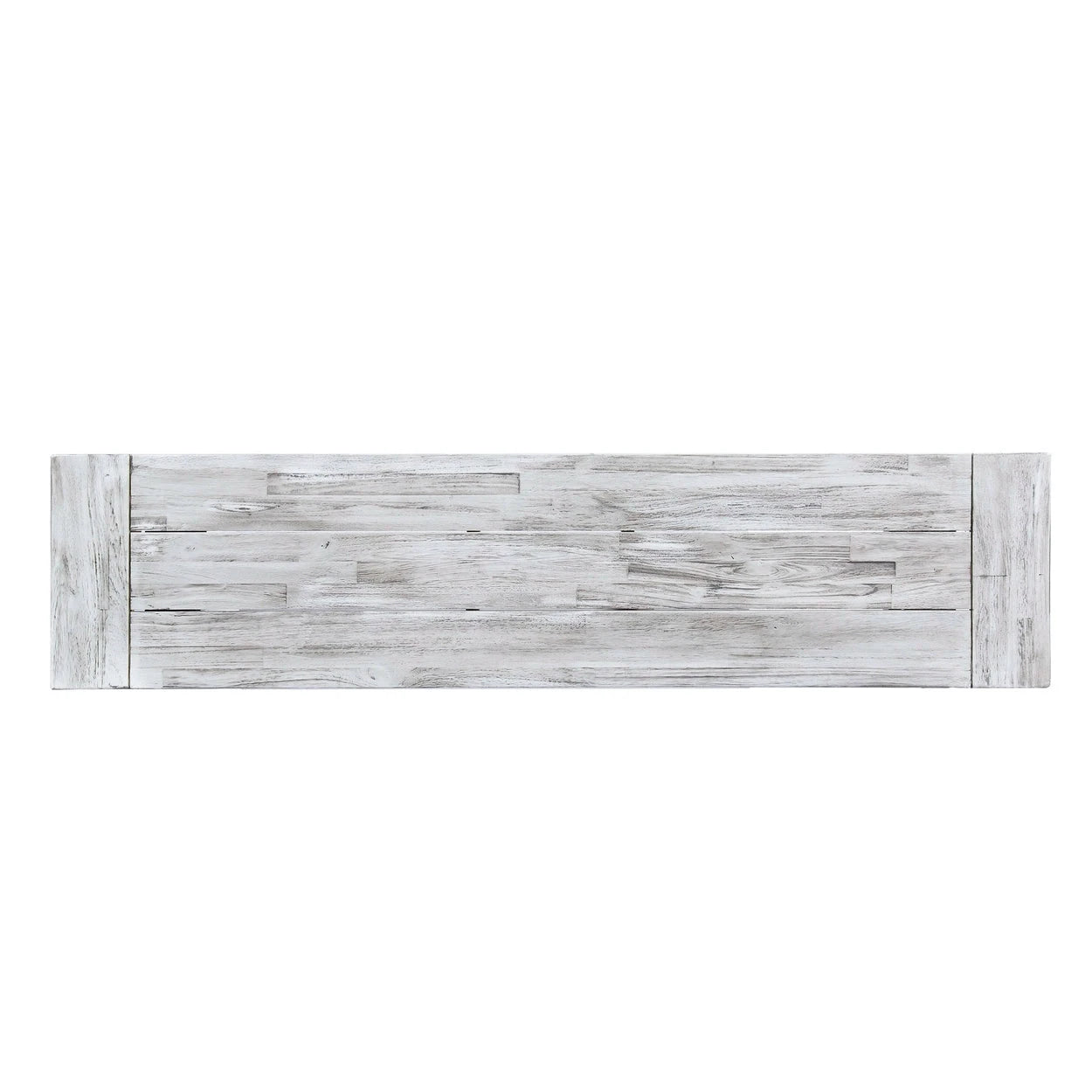 Tranquilizer Outdoor Acacia Wood Bench with Slat Panel Design, Sandblasted Light Gray + BlackDescription Copy
