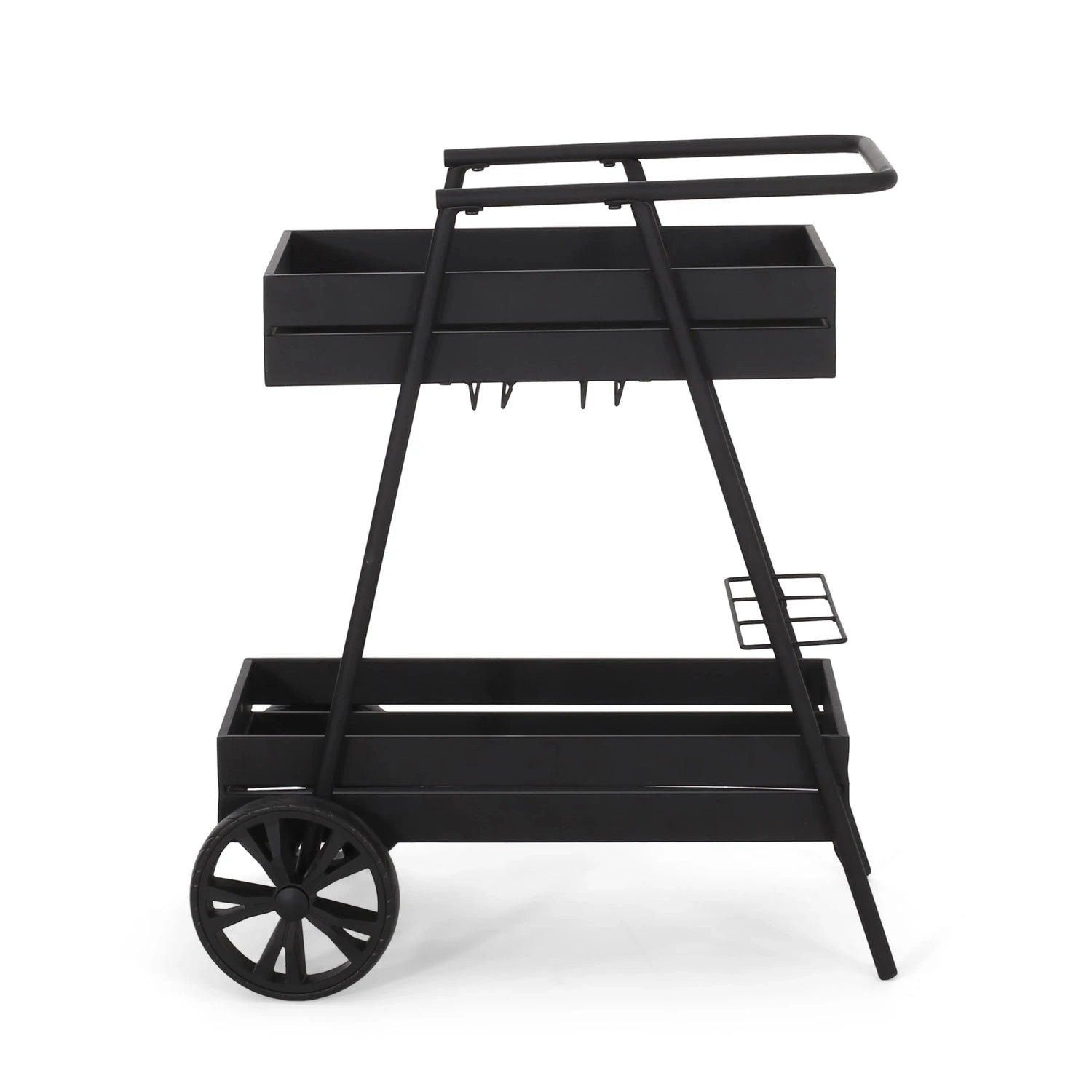 - IRON FRAME: Constructed of iron, the frame of this bar cart is made to be incredibly durable, ensuring that this piece will hold up under use. Refined with a matte finish, this frame brings a sleek touch to this piece.