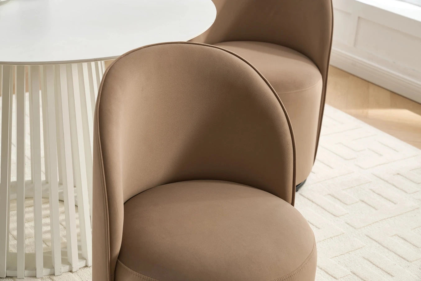 - 【Cozy Velvet Dinging Chair】The curved round back of the single sofa chairs are ergonomically designed to provide soft and comfortable support for your waist and back.