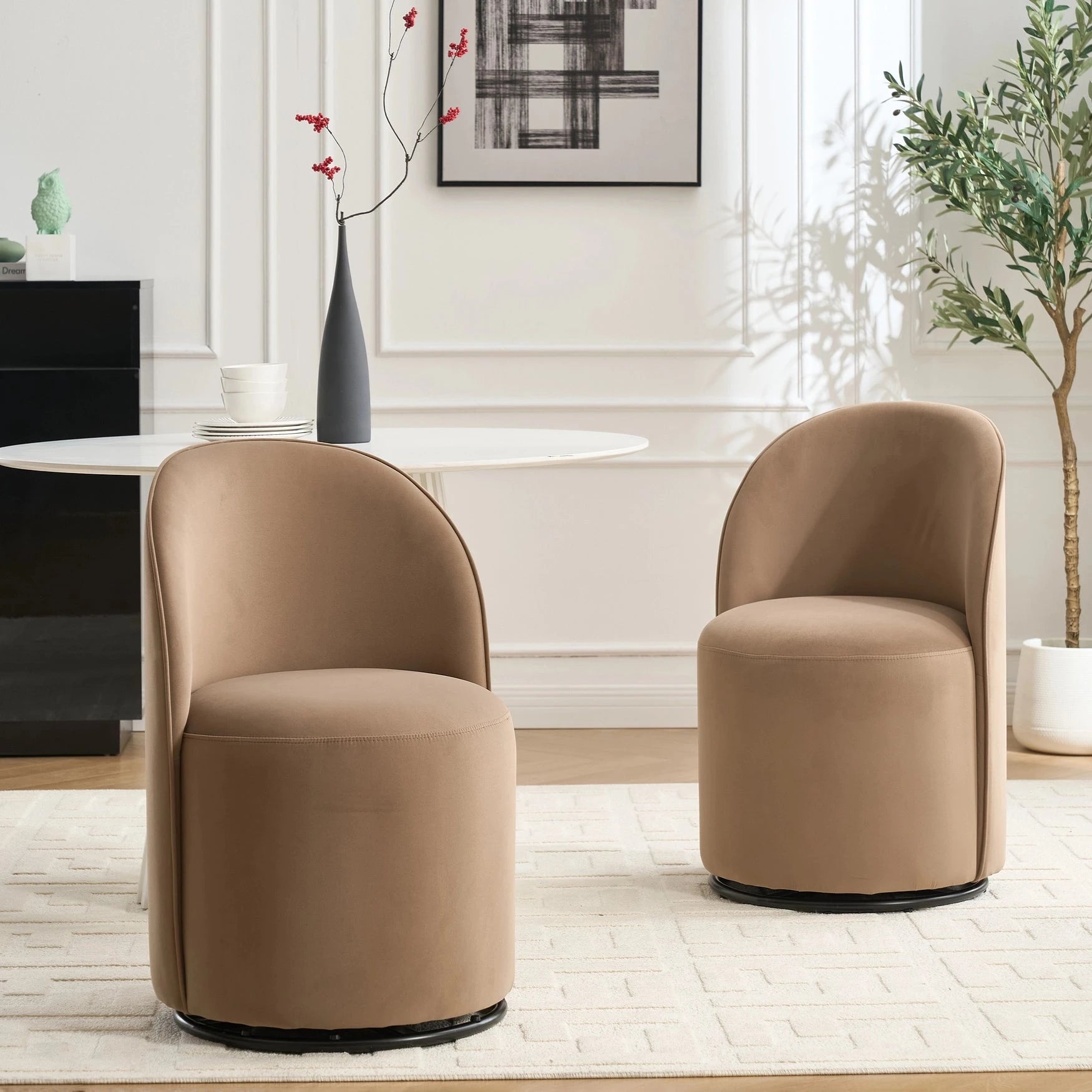 Item Code W3244P308283 Product Type Single Box Product Product Name Set Of 1 Upholstered Kitchen & Dining Room Barrel Chair, Mid Century Modern Round Velvet Dining Chair, 360 Degree Swivel Comfy Armless Accent Makeup Vanity Side Chair for Bedroom Living Room Place of Origin China Main Color Brown Main Material Metal & Wood,Velvet Filler Foam Product Style Modern Use Case Dining Room Chair Type Dining Chairs Chair Upholstery Material Rubberwood Chair Shape Round Chair Fill Material Foam Seating Quantity 1 Product Dimensions