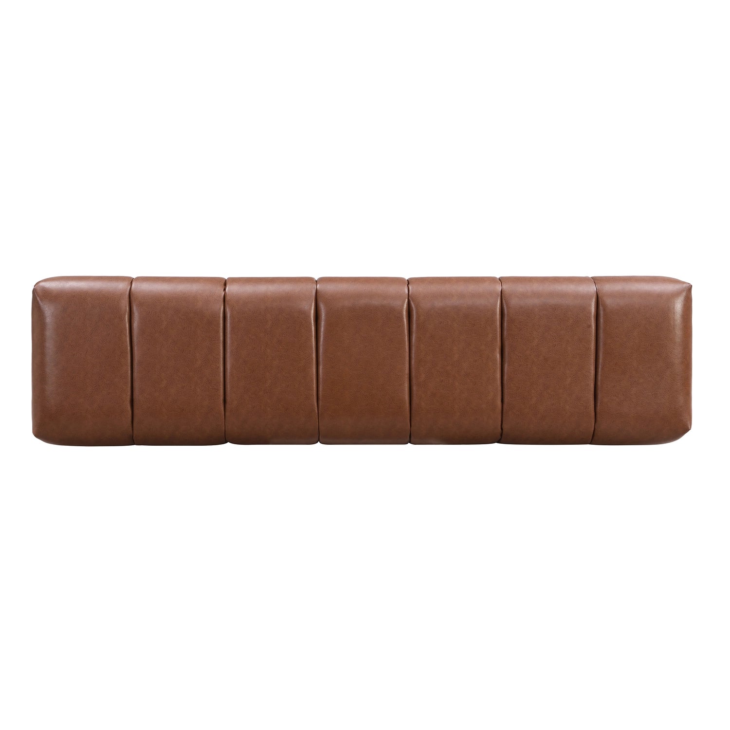 Upholstered Dining Bench for Dining Room, No-Assembly End of Bed Entryway Bench Ottoman for Bedroom Living Room, Brown PU Stool Top Wood Leg 300 LBS Weight CapacityDescription Copy
