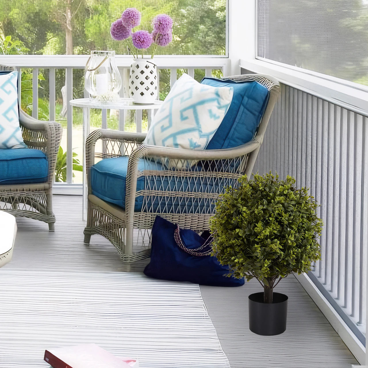 Enhance your indoor or outdoor spaces with this set of UV-protected artificial ball topiary trees. Measuring 55cm in height, these greenery decorations add a touch of nature to your home, office, or patio without the hassle of maintenance. Their versatile design easily complements any decor style, making them a perfect addition to busy households or those looking to elevate their space effortlessly. Crafted from durable, fade-resistant materials, they maintain their vibrant appearance all year round and require no watering, trimming, or sunlight.Feature Bullets