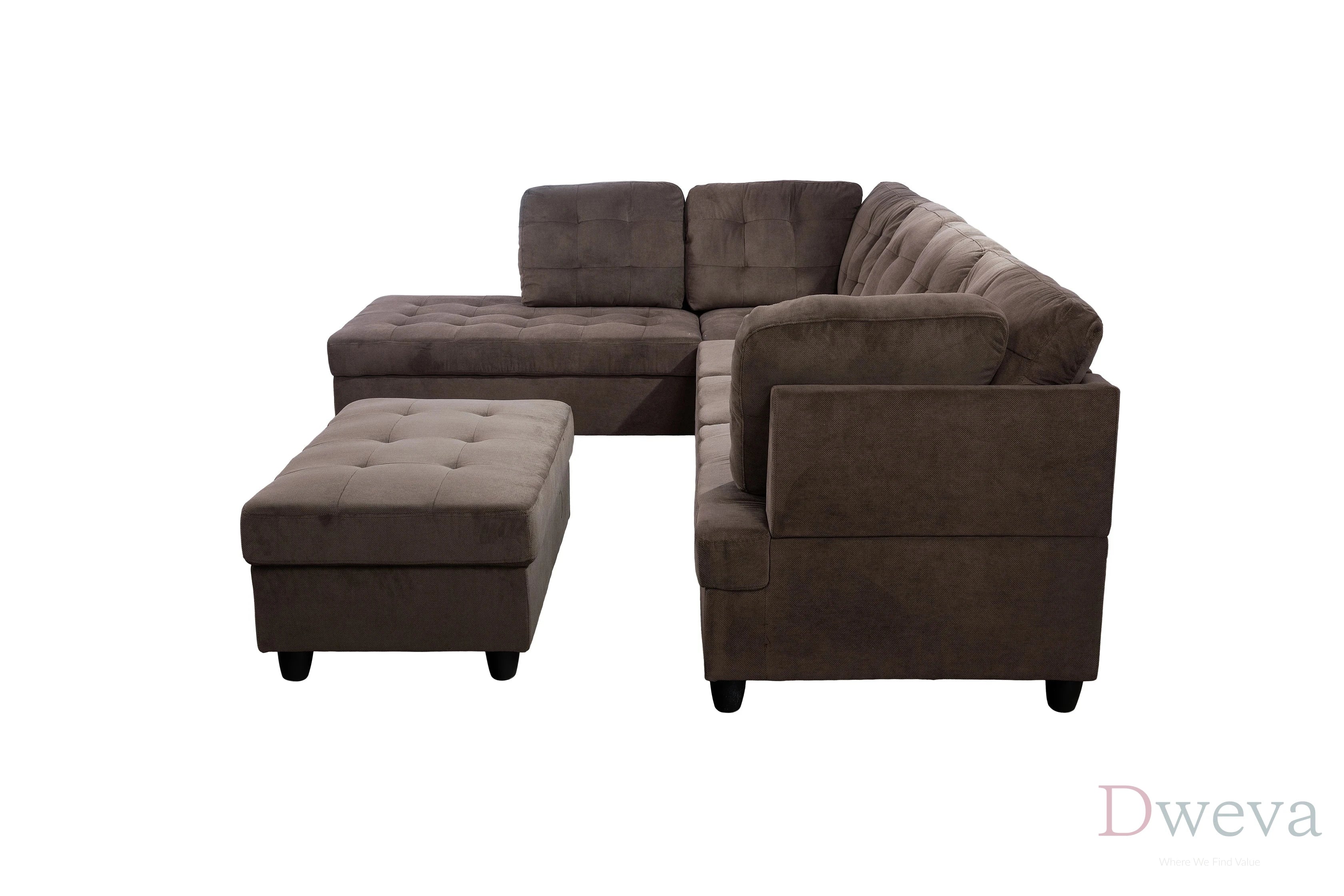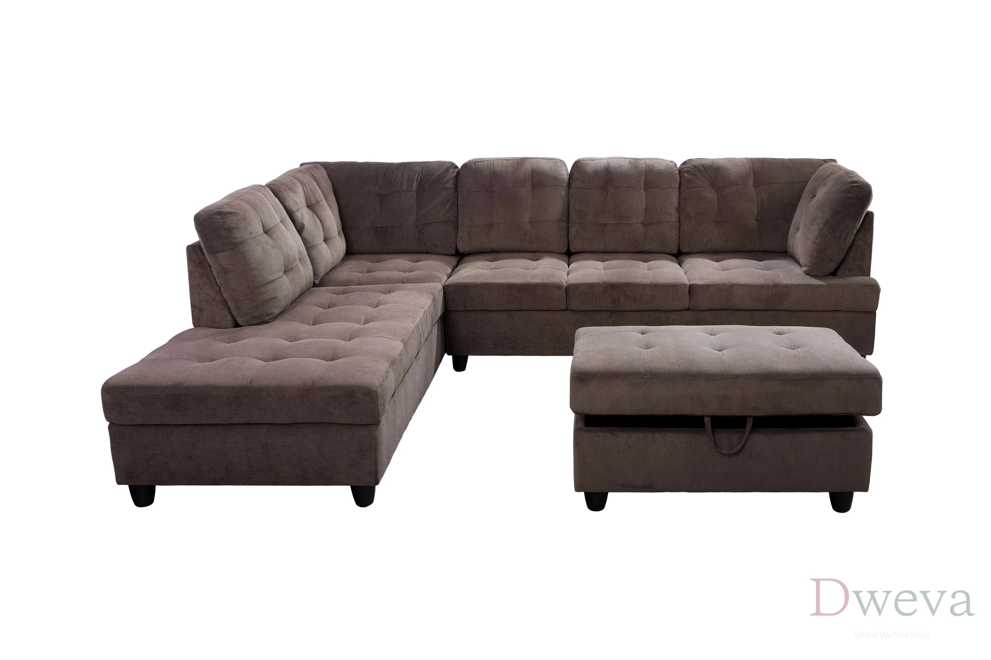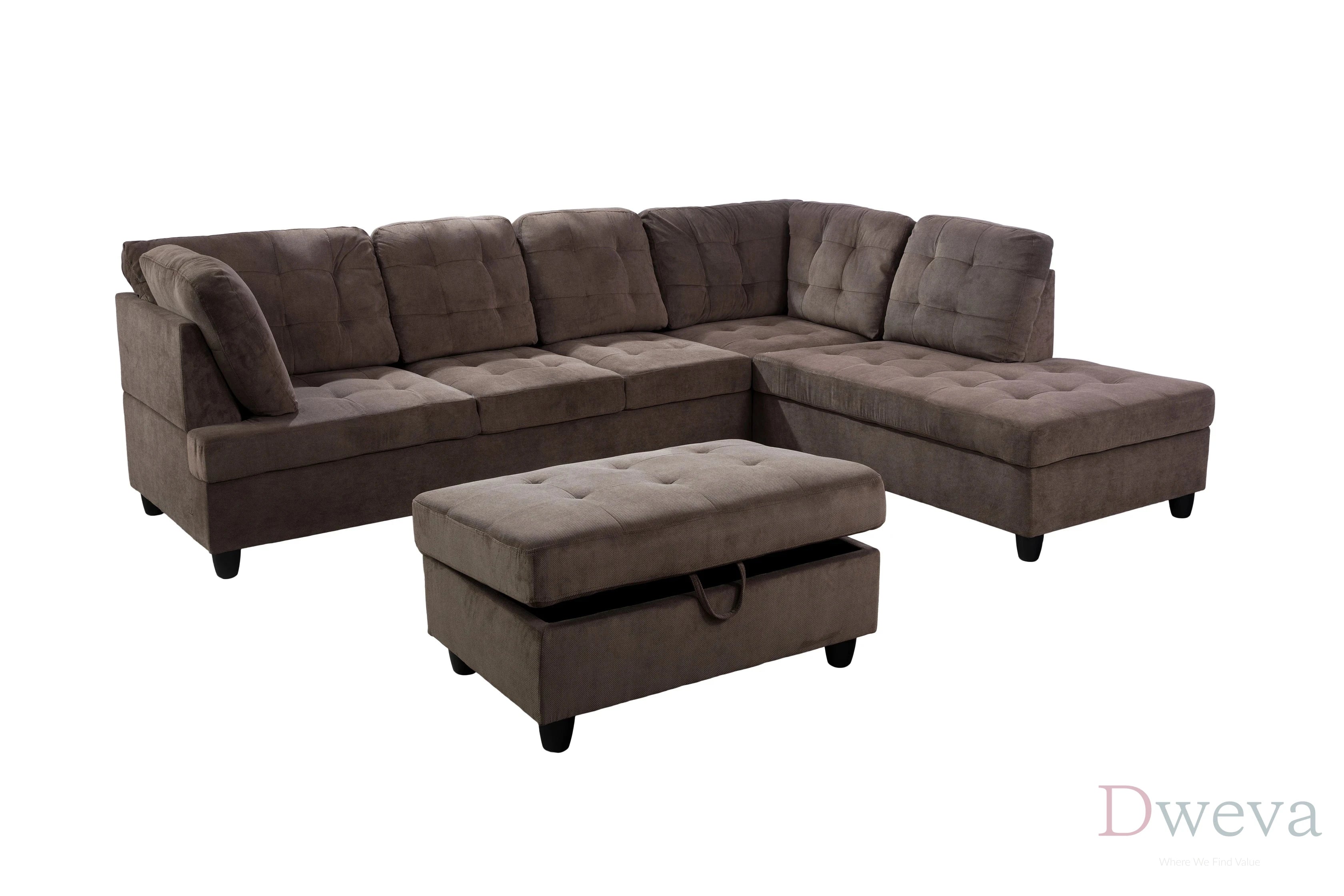 | Included storage: Storage ottoman is included in the 3-piece set. | Included storage: Ottomans are often sold as separate add-ons rather than included with a sectional purchase. |