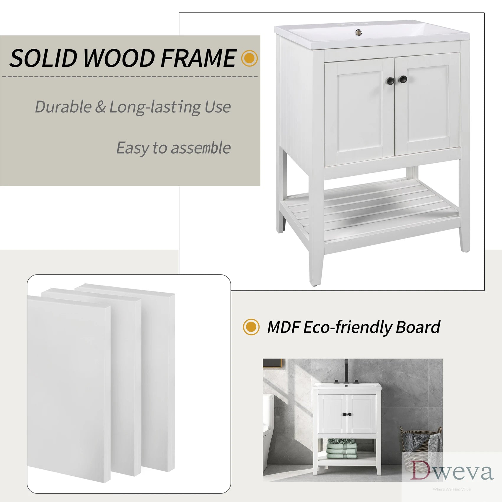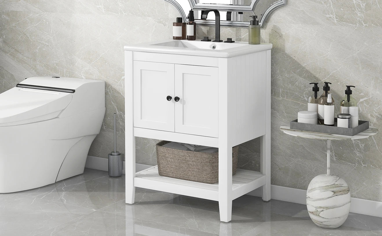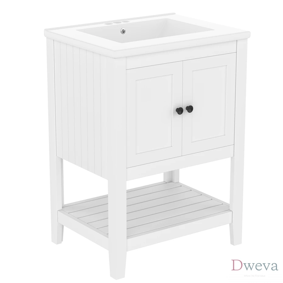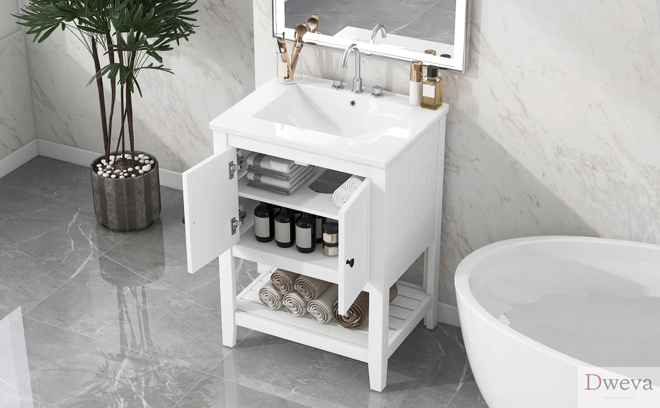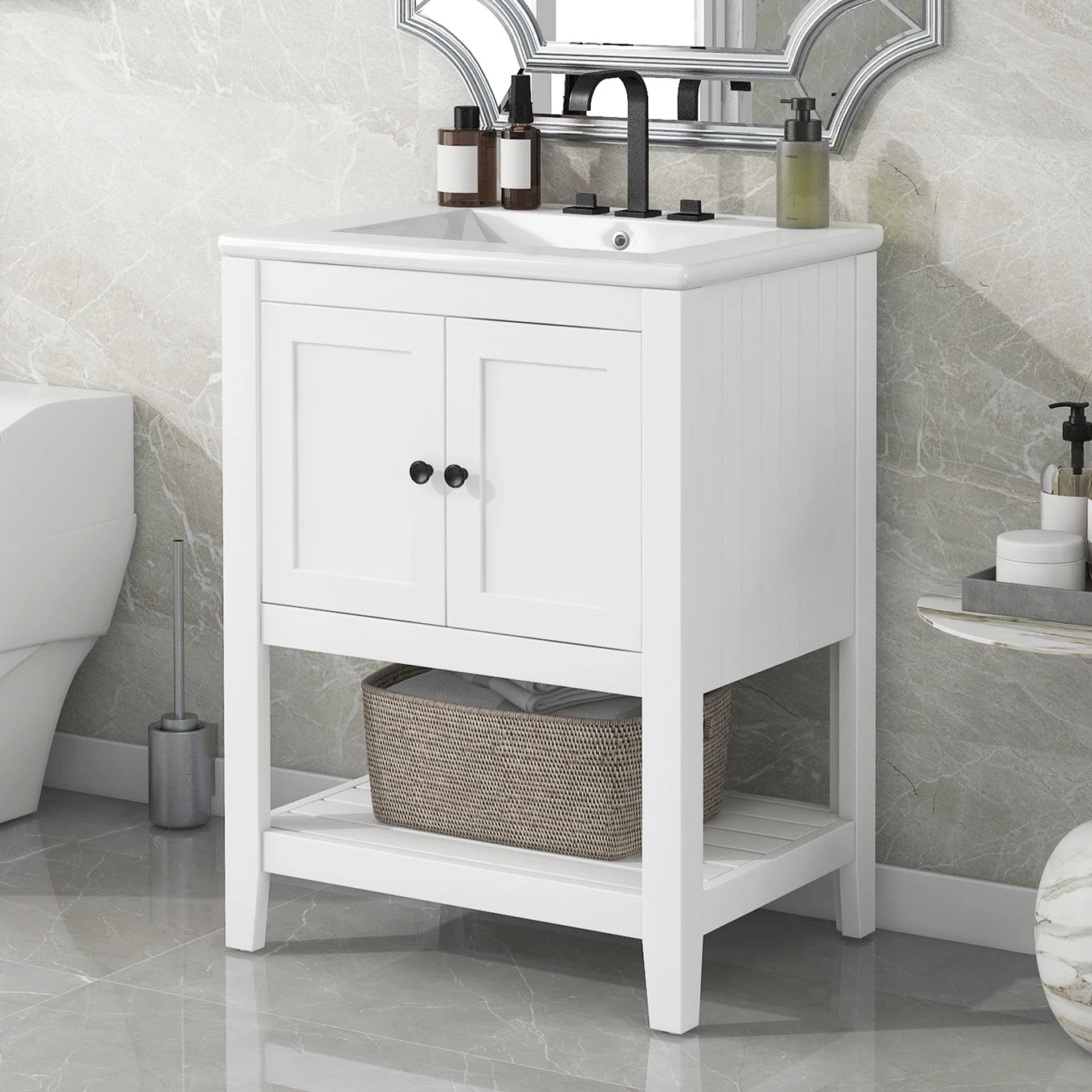 | Product Name | [VIDEO] 24" White Modern Sleek Bathroom Vanity Elegant Ceramic Sink with Solid Wood Frame Open Style Shelf |