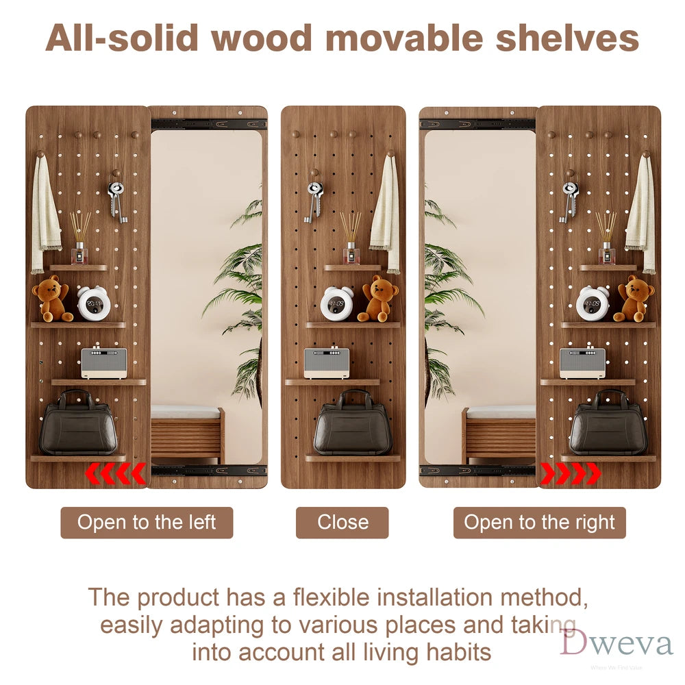 - [Push-pull removable panel] : The panels of this wall-mounted shelving full-length mirror feature a hardware dual-slide design that moves left and right, allowing you to create a unique layout to suit your style and preferences, whether you want a wall mirror for your bedroom or prefer a segmented look