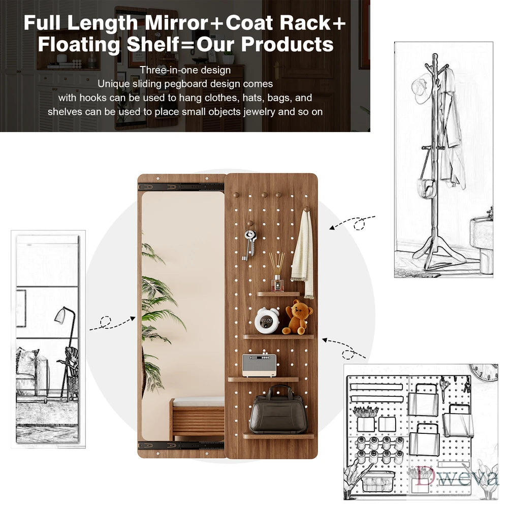 - [Multi-functional design] : This wall-mounted shelving full-length mirror is both a wall decoration and a functional accessory. The full mirror design has a separate display stand and hook position, you can adjust the display stand and hook position as needed to help you quickly organize your items.