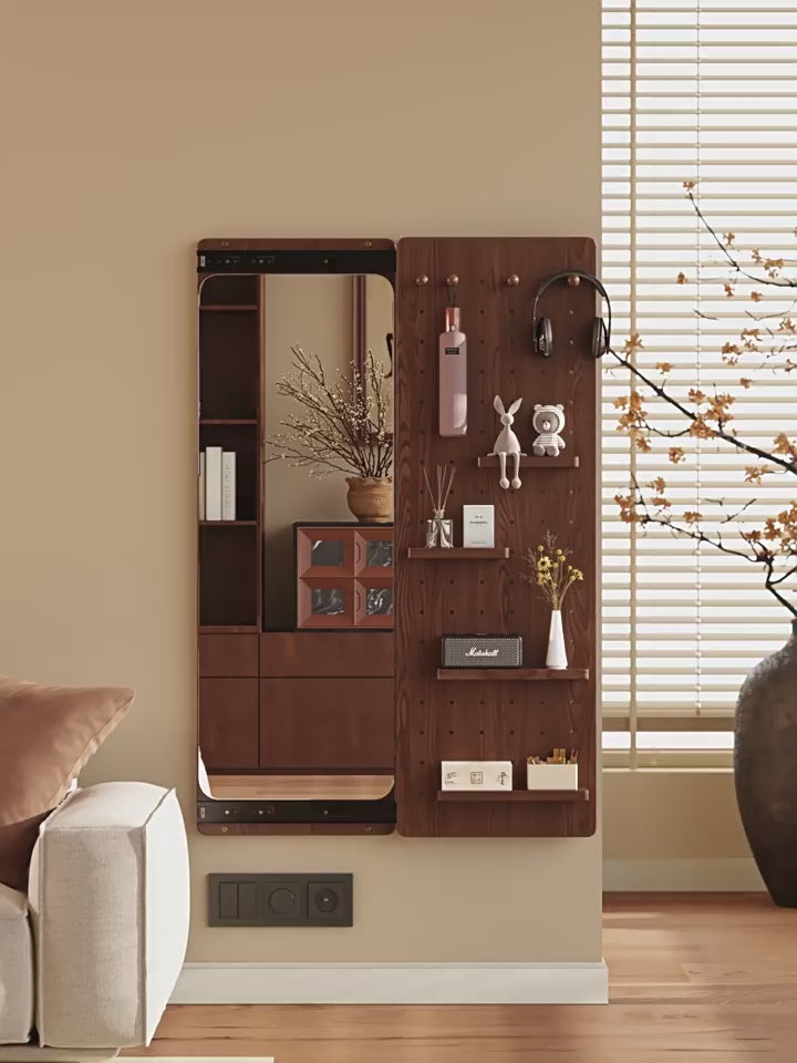 - [Space utilization] : This wall-mounted shelving full-length mirror maximizes the use of space and is ideal for small rooms, apartments, entrances, etc. By mounting it on the wall, you can save valuable floor space while still enjoying the benefits of wall mirrors with shelves.