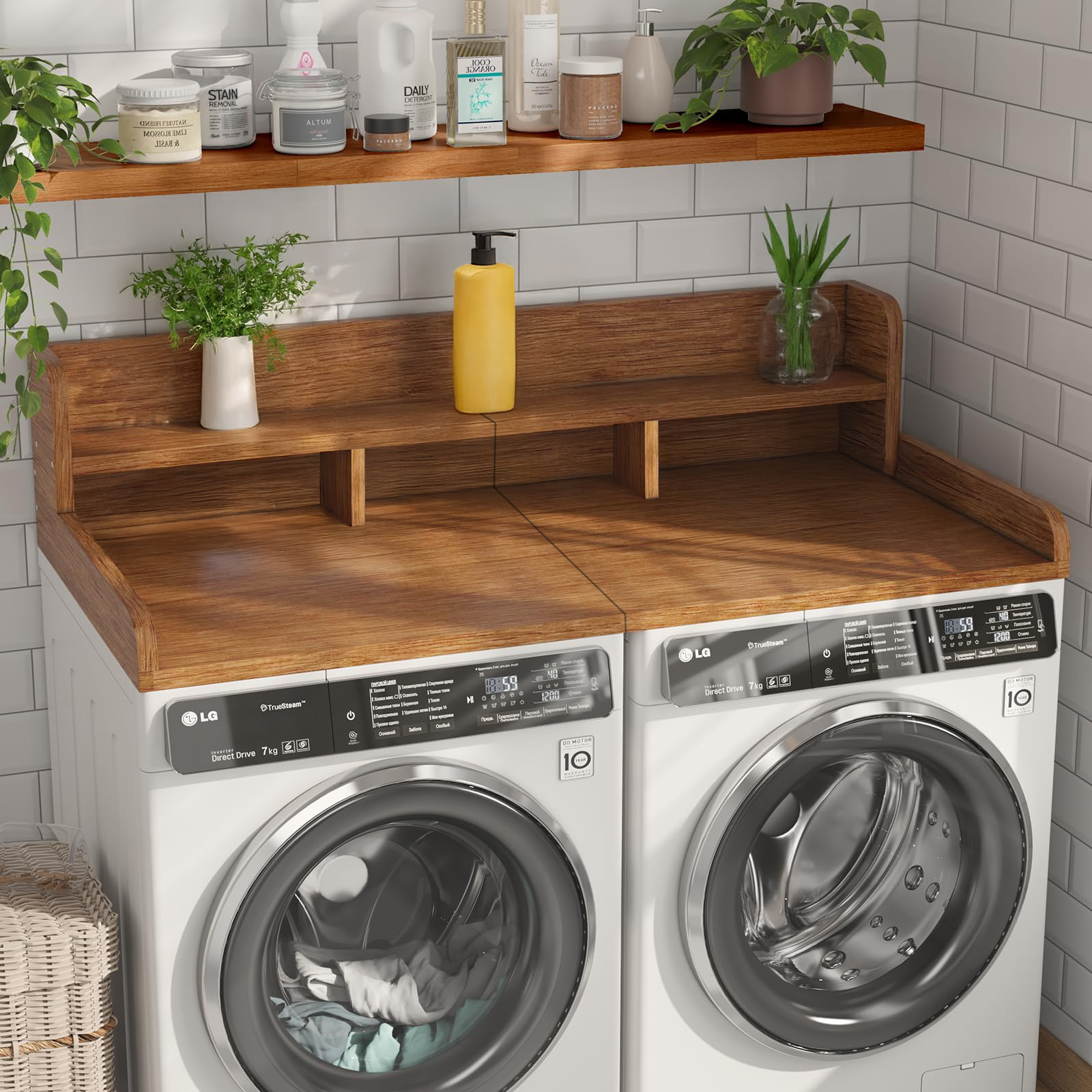 | Product Name | Washer Dryer Countertop with Non-slip Pads, Laundry Wood Shelf Topper with Edge, 54" Width x 27.5" Depth Double Layer Organizer for Washer and Dryer Laundry Hamper Counter Storage Organization(WALNUT) |